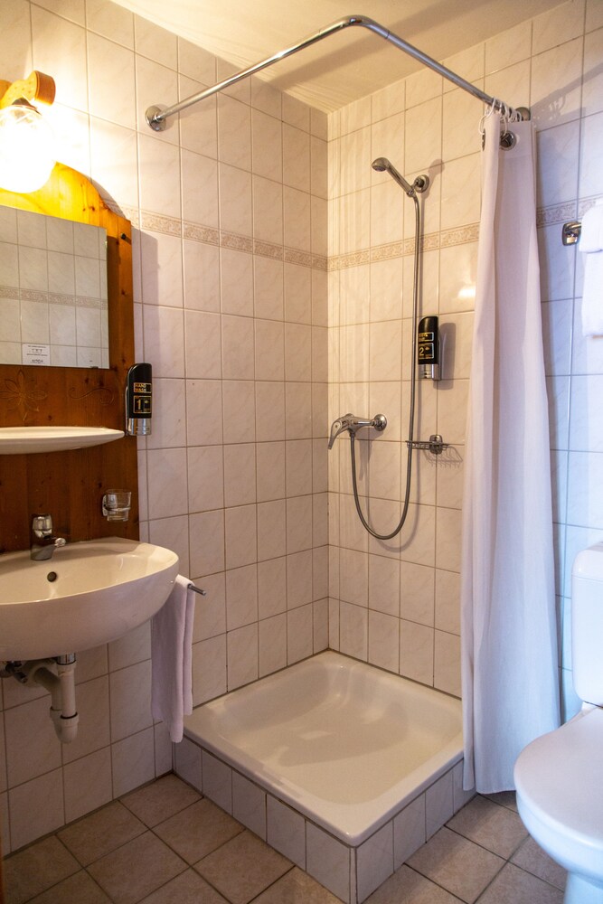 The Relais Alpin prospers did to its location, catering to the buses of tourists making their way to and from the Montreux and Interlaken areas. It is situated about midway between the two, making for a convenient stopping-off point in the middle of the Alpine valleys studded with ski chalets. So, check the location box—once you find the place, that is (we drove around for over 90 mins on those lovely rural routes trying to find the place, which even a GPS wasn’t of much help—a hint: it’s on the road between Aigle and Château-d’Oex, not Gstaad, at “Des Mosses,” which doesn’t rank mention on many atlases). Accommodations are basic, I would say. You’ve got the bare necessities here but no frills—adequate for what the average bus tourer (or skier) requires but perhaps less than other visitors are hoping for.