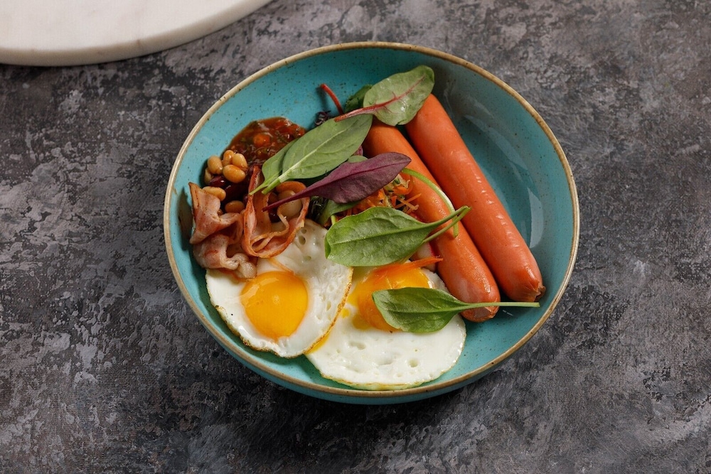Завтрак по меню. я был один в ресторане поэтому все произошло довольно быстро, но потенциально это проблема. И привет уборщице, которая перед моим нос... столиком мыла полы. При этом различного положения сотрудники и менеджеры ходили мимо, никого это не смущало, наверное со мной что-то не так))