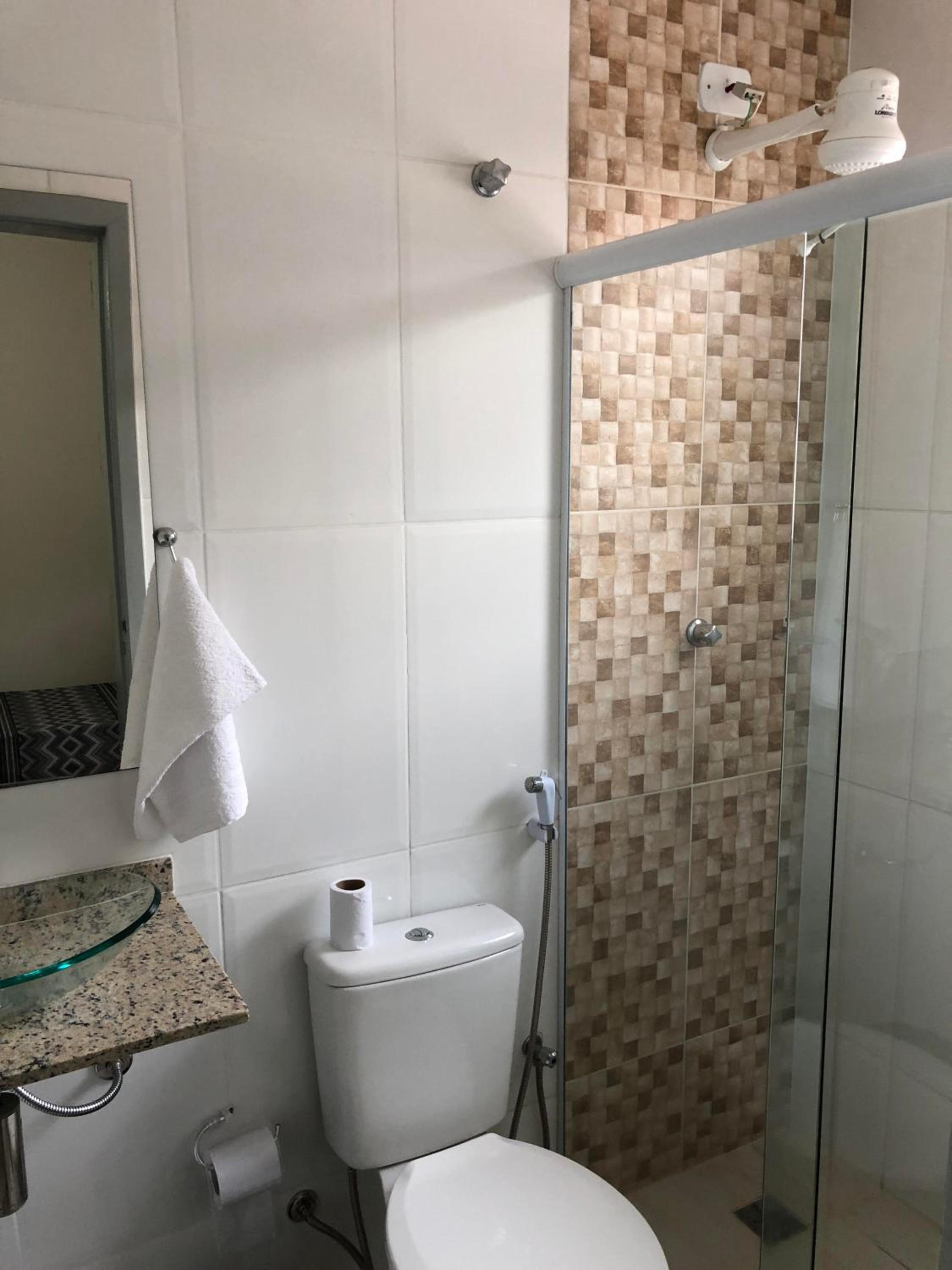 Não tem ducha ao lado do vaso sanitário.