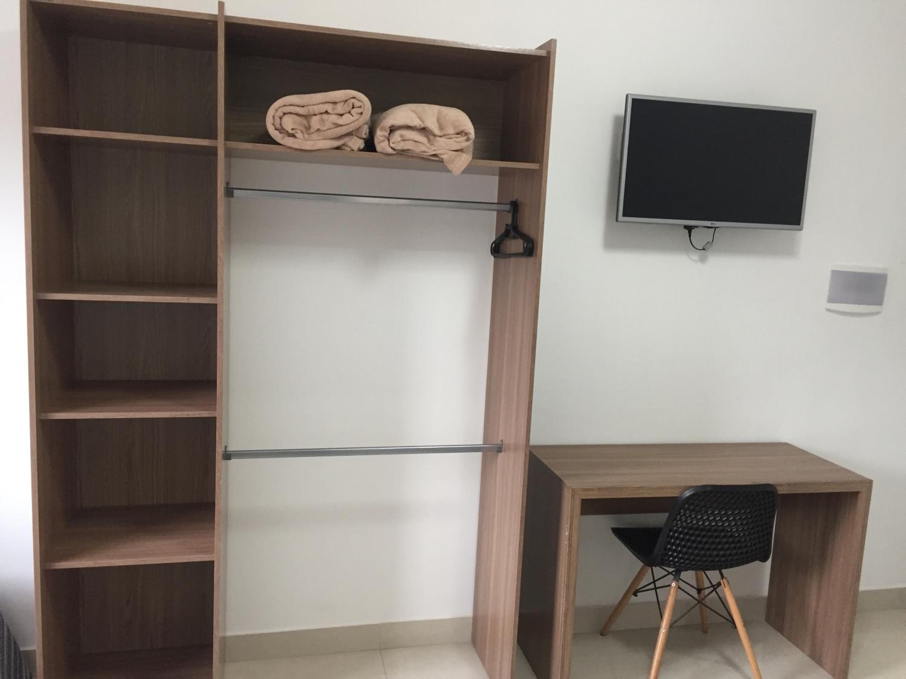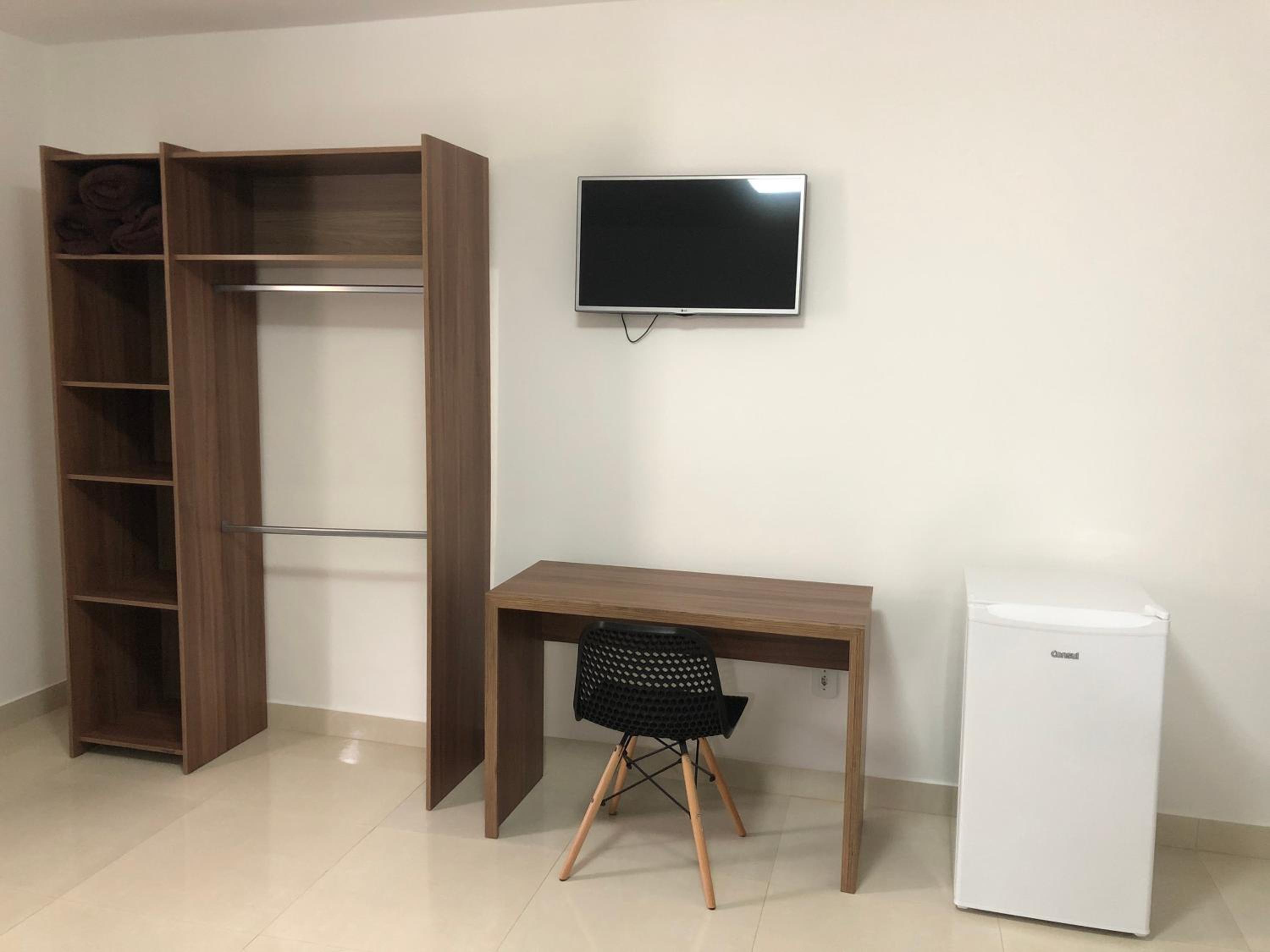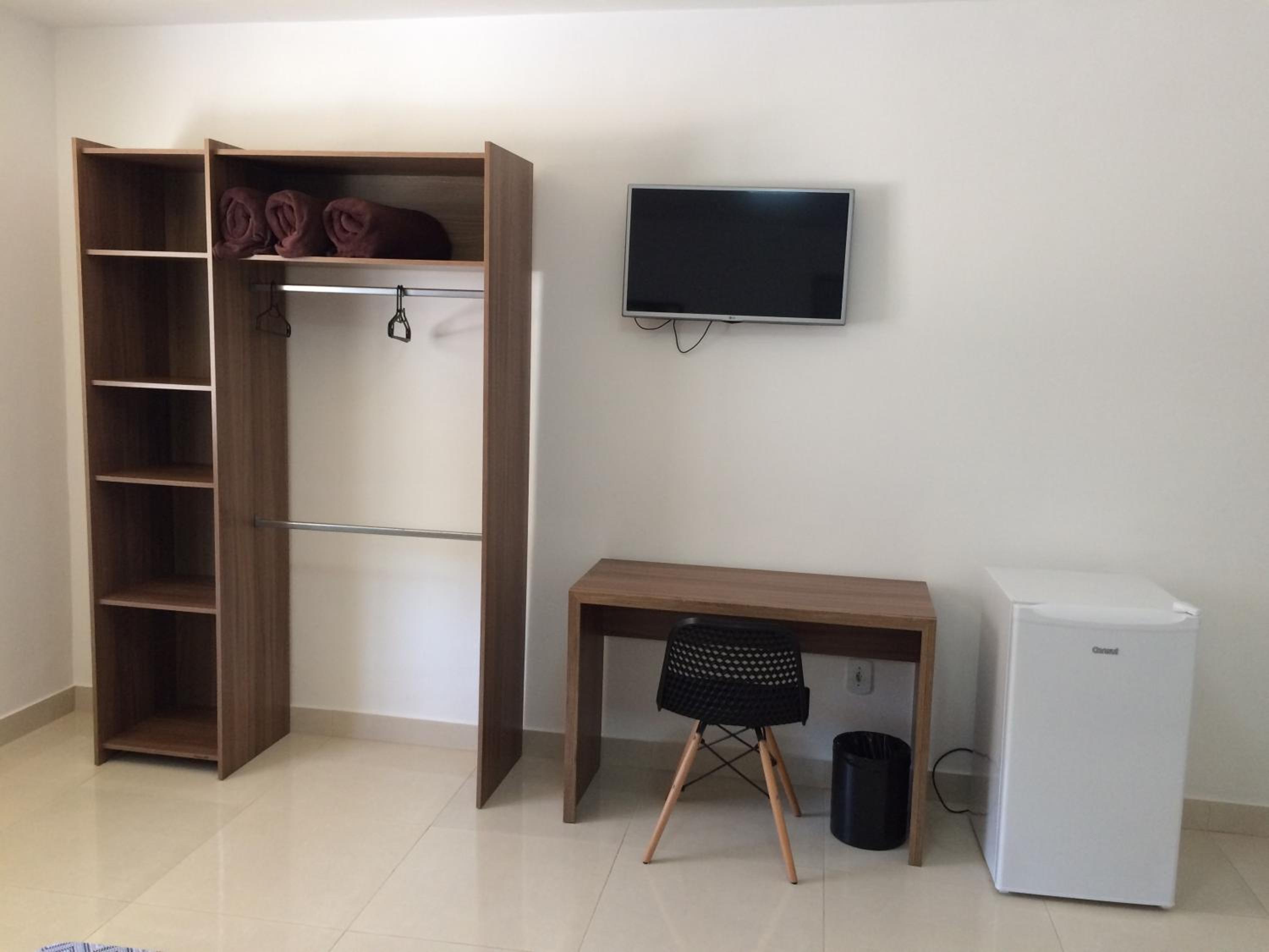 Mobiliário modesto, ar condicionado com filtro de ar sujo (preferi utilizar o ventilador), as fronhas de travesseiro não apresentavam bom cheiro.
