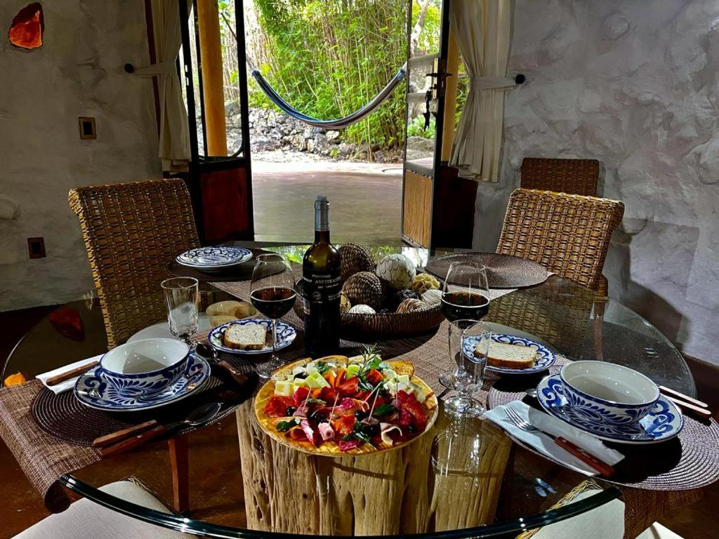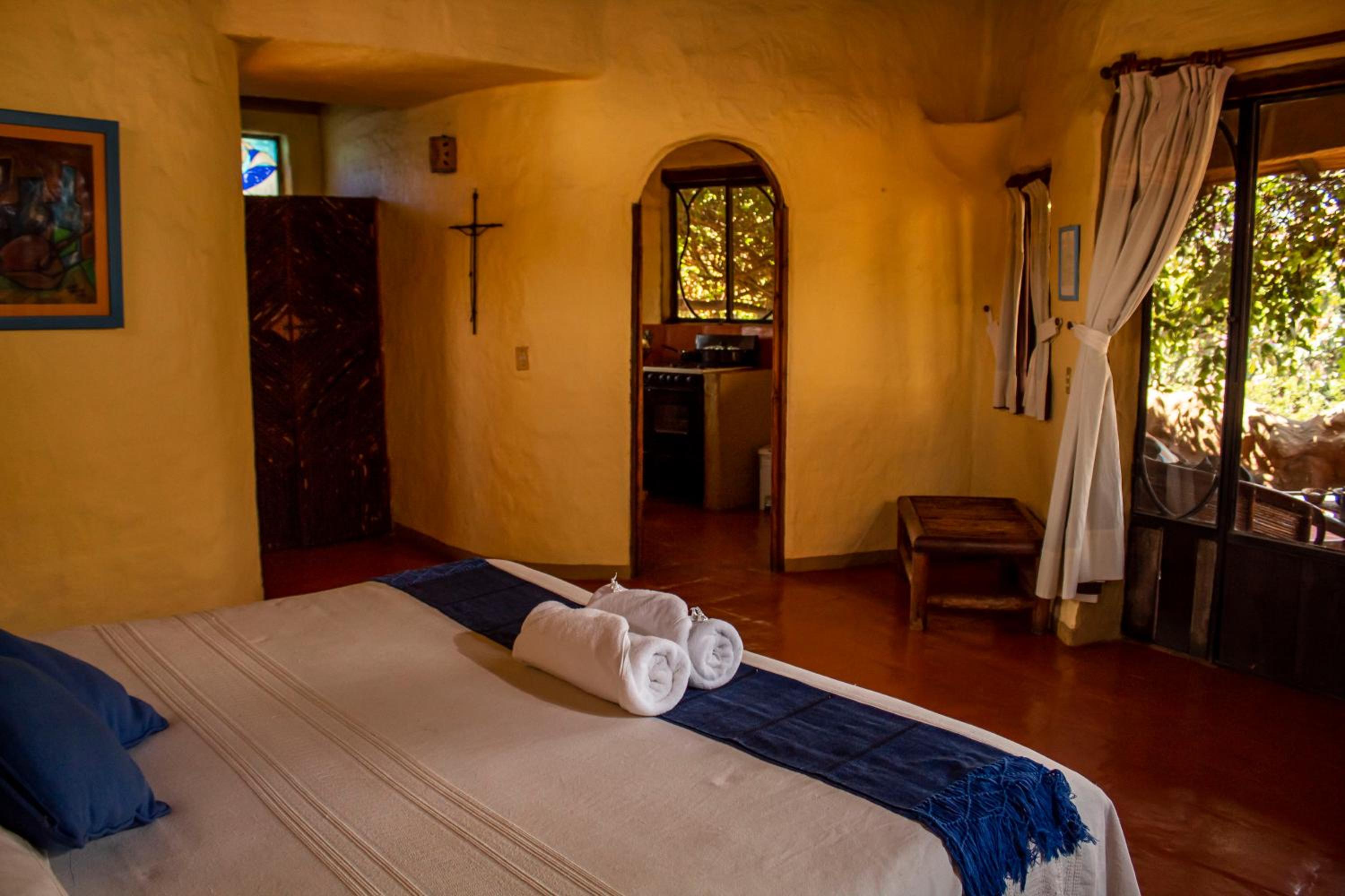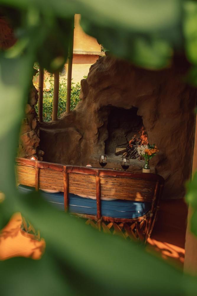 Guests can unwind in the open-air hot tub, take a refreshing dip in the natural quartz-lined swimming pool, or experience traditional Temazcal sauna rituals. For cooler evenings, a cozy bonfire area awaits. Indoor relaxation options include a welcoming lounge with a fireplace and a restaurant serving delectable dishes from Thursday to Sunday.