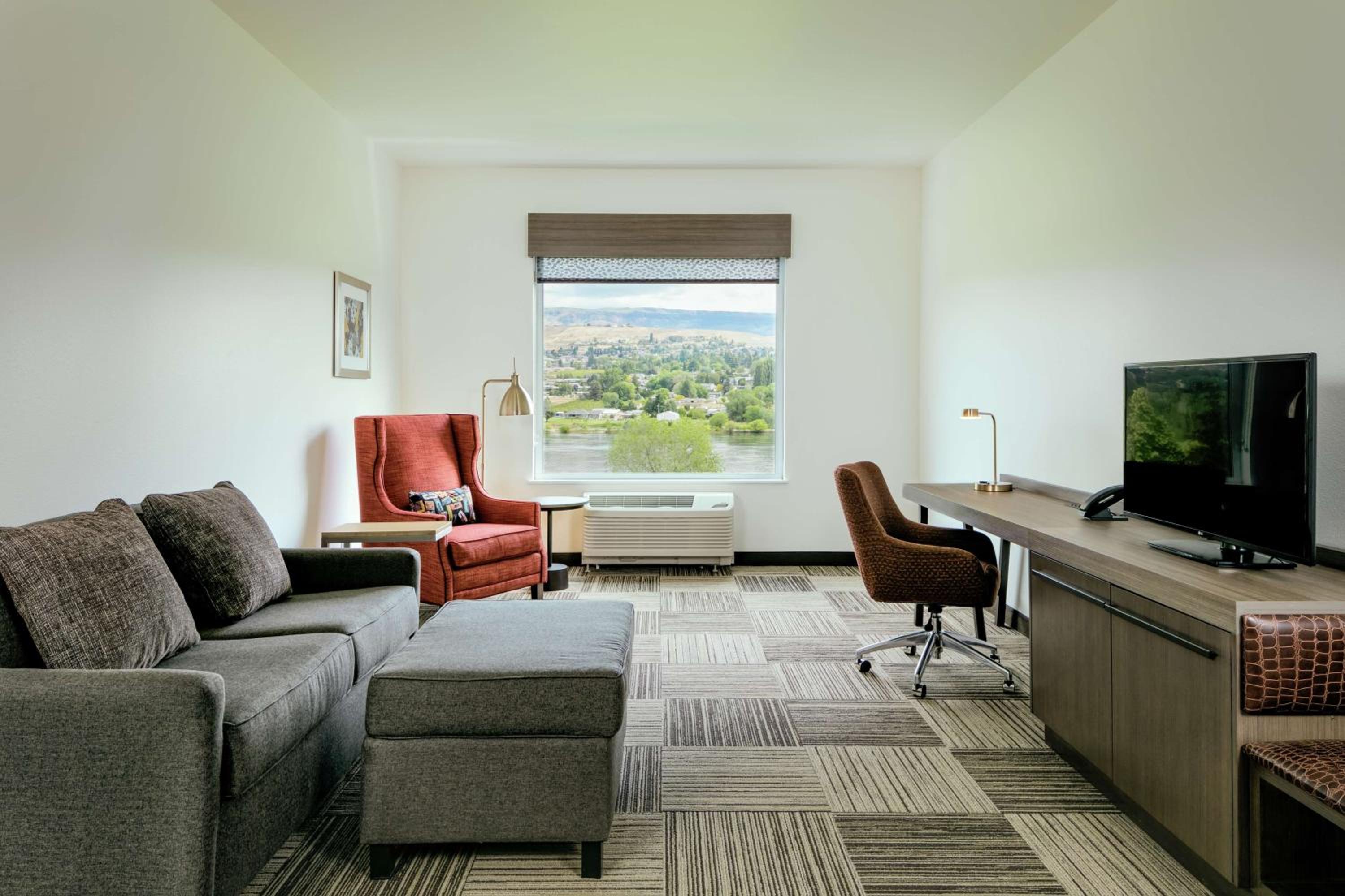Excellent location to downtown Wenatchee and Pybus Market. Right next to the trail on the Columbia River. Easy walking for exercise and daytime/evening activities. Spacious, clean room. Large lobby area. Friendly staff.