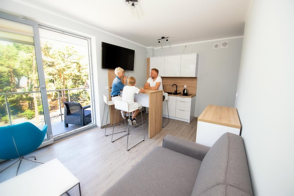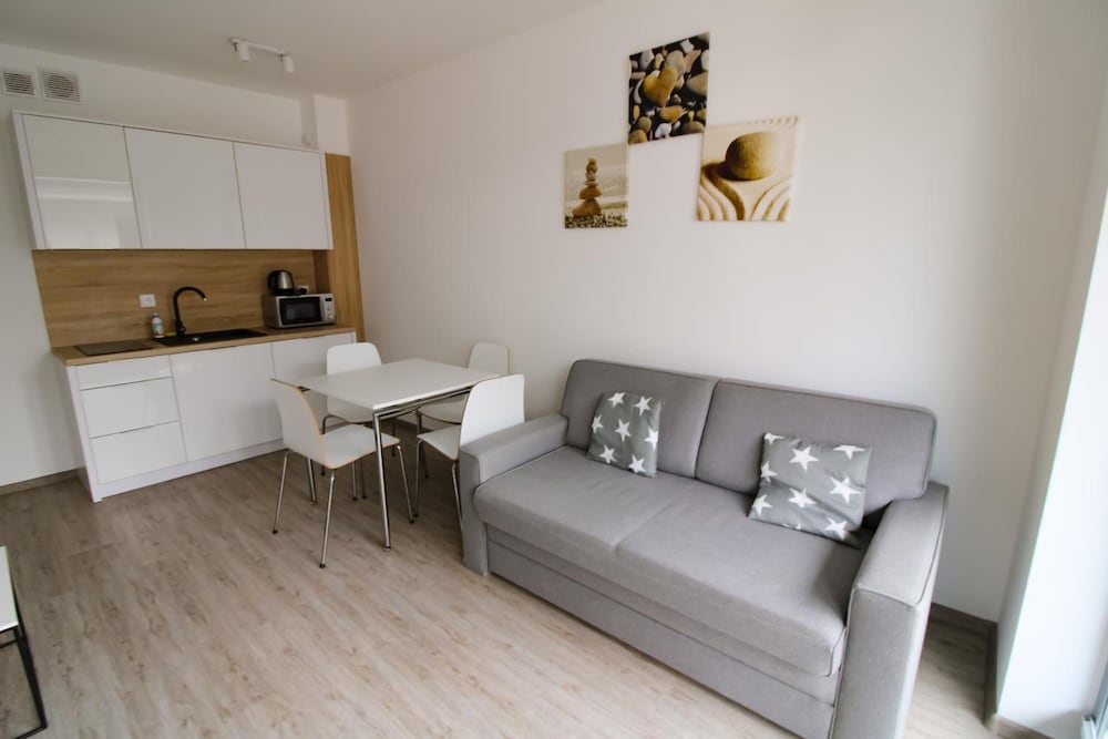 With 10 well-equipped guestrooms featuring kitchenettes, furnished balconies, and complimentary Wi-Fi, Laola Apartamenty ensures a cozy stay. The hotel also offers amenities like multilingual staff, conference spaces, and self-parking for a convenient experience.