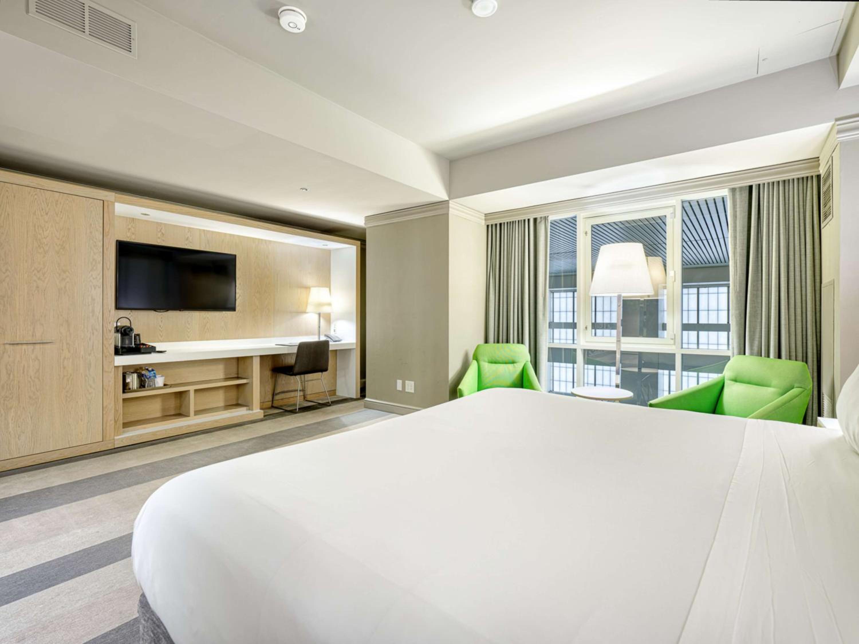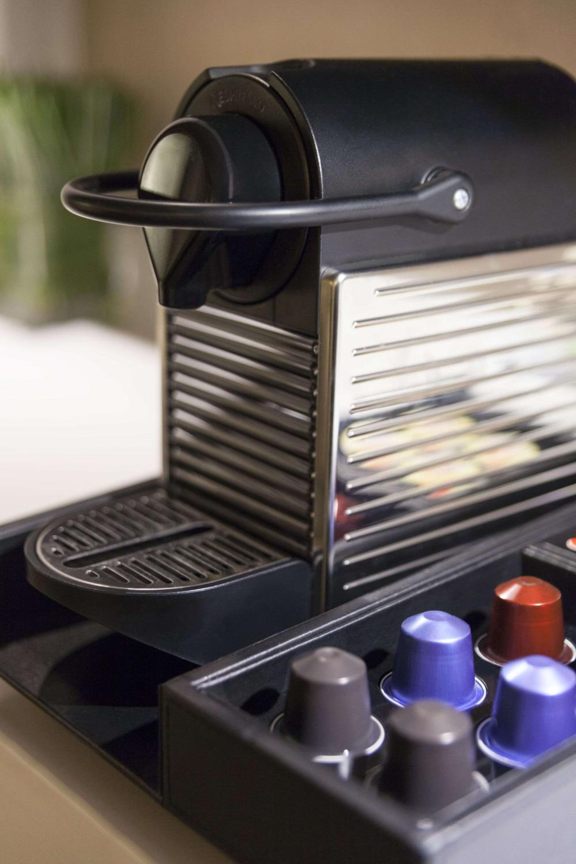 Each room features modern amenities such as a flat-screen cable TV, refrigerator, and coffee maker. Guests can also enjoy an iHome radio, laptop safe, and complimentary Wi-Fi during their stay.