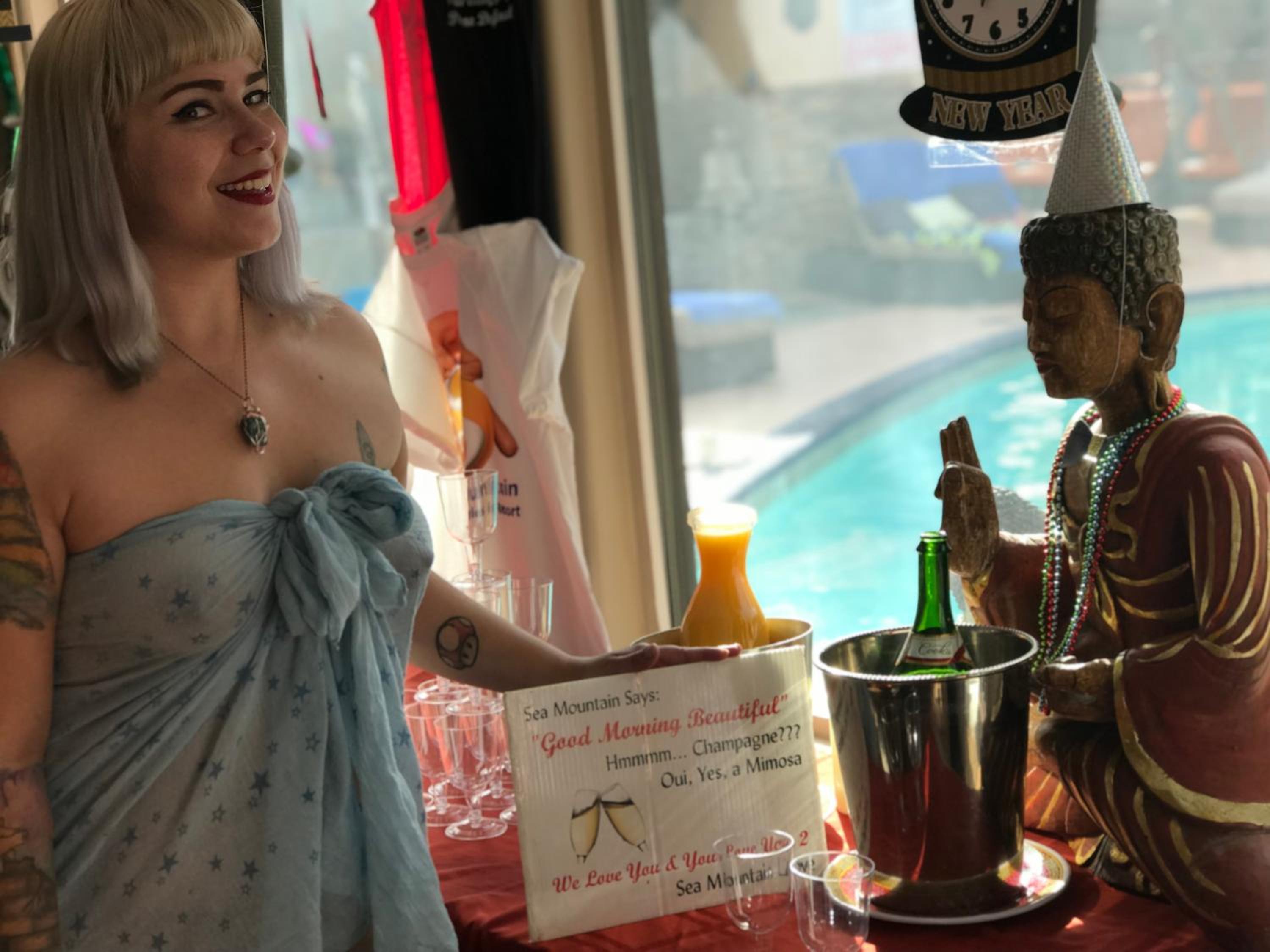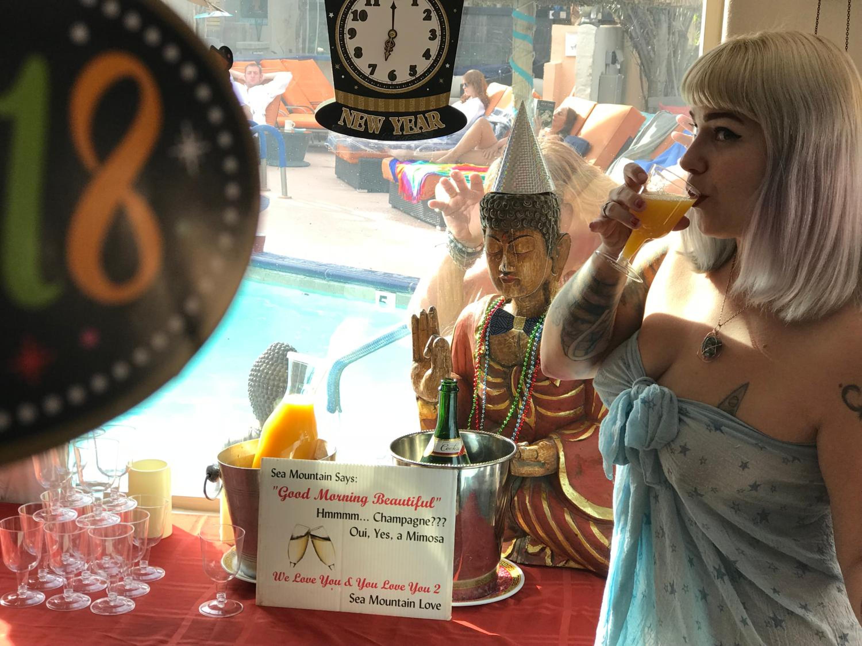 My husband and I had the pleasure of staying at Sea Mountain for their Labor Day event weekend. The Saturday party was popping, and we love that the crowd was so open-minded and kind! There was one woman who brought jello shots to share, and they were sooo good. It's a place to keep the phones away and focus on socializing with new friends or just simply enjoying your partner. There was food and snacks all day long! For the 'hot summer Labor Day' vibe, we were a fan of the offerings - beef stew, fried chicken, hot dogs, sodas, and more. Definitely satisfying after all the energy spent having fun all day and night ;) The costume/lingerie party was so entertaining to watch, and the DJ was great. It was busy all day and night, but the staff never missed a beat with providing drinks and more towels, and they constantly cleared things up so the place was kept CLEAN the whole time. We definitely appreciated that, and we didn't want to retire for the night even though it was 2am. Being naked and partying all day is an indescribable and freeing experience. To be honest, personally, each time we come here, it's like the best sexy couples' experience. We feel the glow for the week after too. For the open-minded, I'd recommend you try it at least once!
