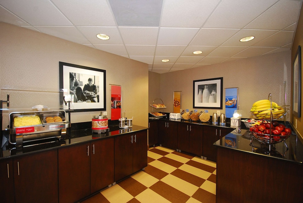 One week stay. Easy check in. Clean. Quiet. Buffet breakfast typical of Hampton Inn: potatoes, eggs, sausage, oatmeal, cereals, fruit, fresh waffles, boiled eggs, yogurts, etc. was hot and replenished frequently.