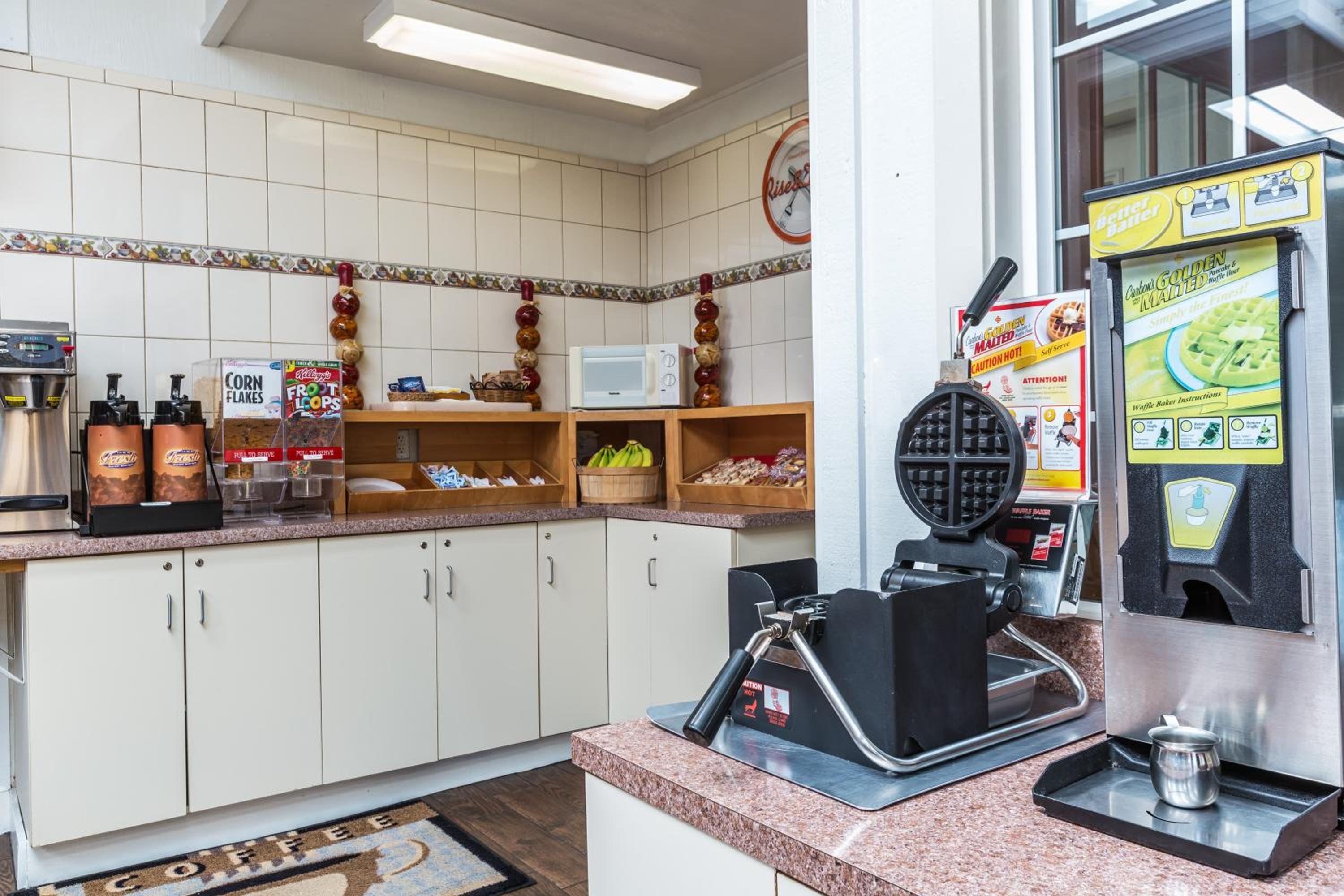 The waffle maker was very popular so I didn't wait to try it since there were plenty of other options. I really liked the spacious room where breakfast was served.