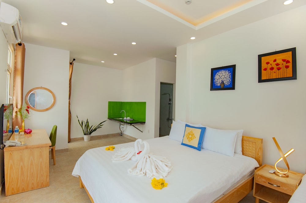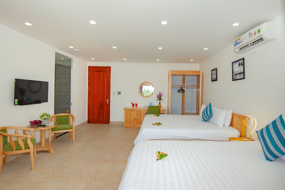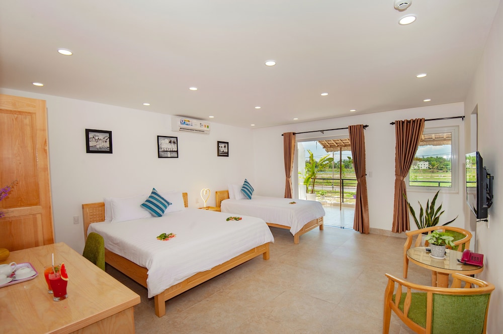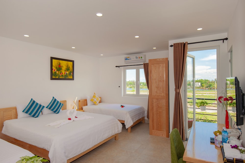 nice rooms, very spacious. We needed 2 rooms, staff gave us a choice of floors... Beds were comfortable and bathrooms clean and modern. Pool area was beautiful, if a little cramped, and had free use of bicycles to get to An Banh beach (5 min ride, 10 min walk, and only one short stretch on a busy road).