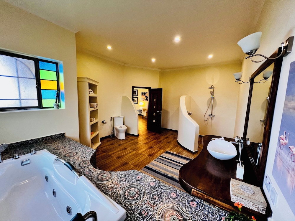 This is a beautiful haven just outside Moshi with views over Kilimanjaro. Very friendly staff and well appointed rooms. The owner is a very welcoming host as well as an accomplished chef and you will dine well here. The buffet breakfast is excellent with a wide choice of fresh fruits, cereals, yoghurts, cakes and biscuits, hot drinks and fruit juices. Individual orders are taken for a freshly cooked breakfast if you wish. Spa facilities are available and swimming pool as well.