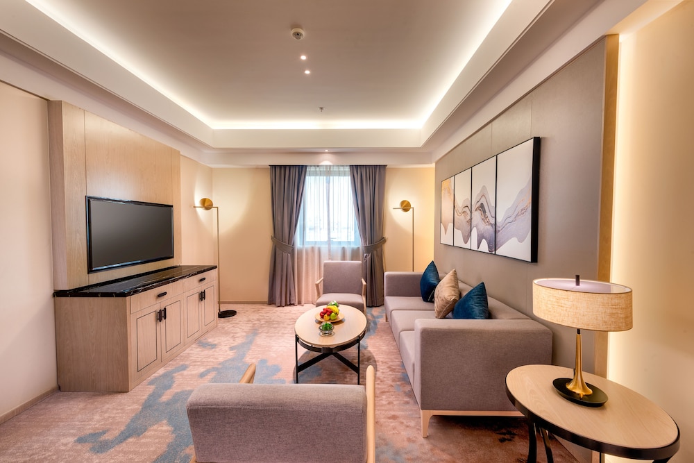酒店很新房間很大,房間整體的色調奢華且ㄧ致,因為是出差性質所以很重視房間辦公空間,除了電玩旁有大小剛好的桌椅,還有L型沙發累了可以休息躺ㄧ下👍廁所是最滿意的地方,乾濕分離是酒店基本之外,外面浴缸拉上拉簾就可以邊泡澡邊看市景,非常愜意☺️