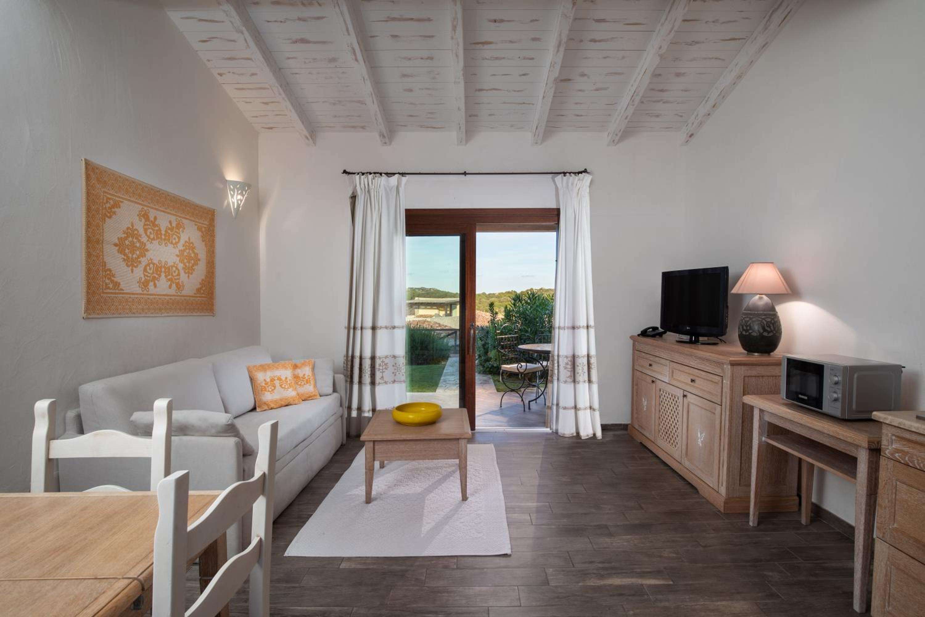 Elegant Apartments with Sea Views: Immerse yourself in the beauty of Sardinia with our elegantly decorated apartments offering stunning sea views. Enjoy the comfort of fully fitted kitchens and flat-screen TVs in every apartment.
