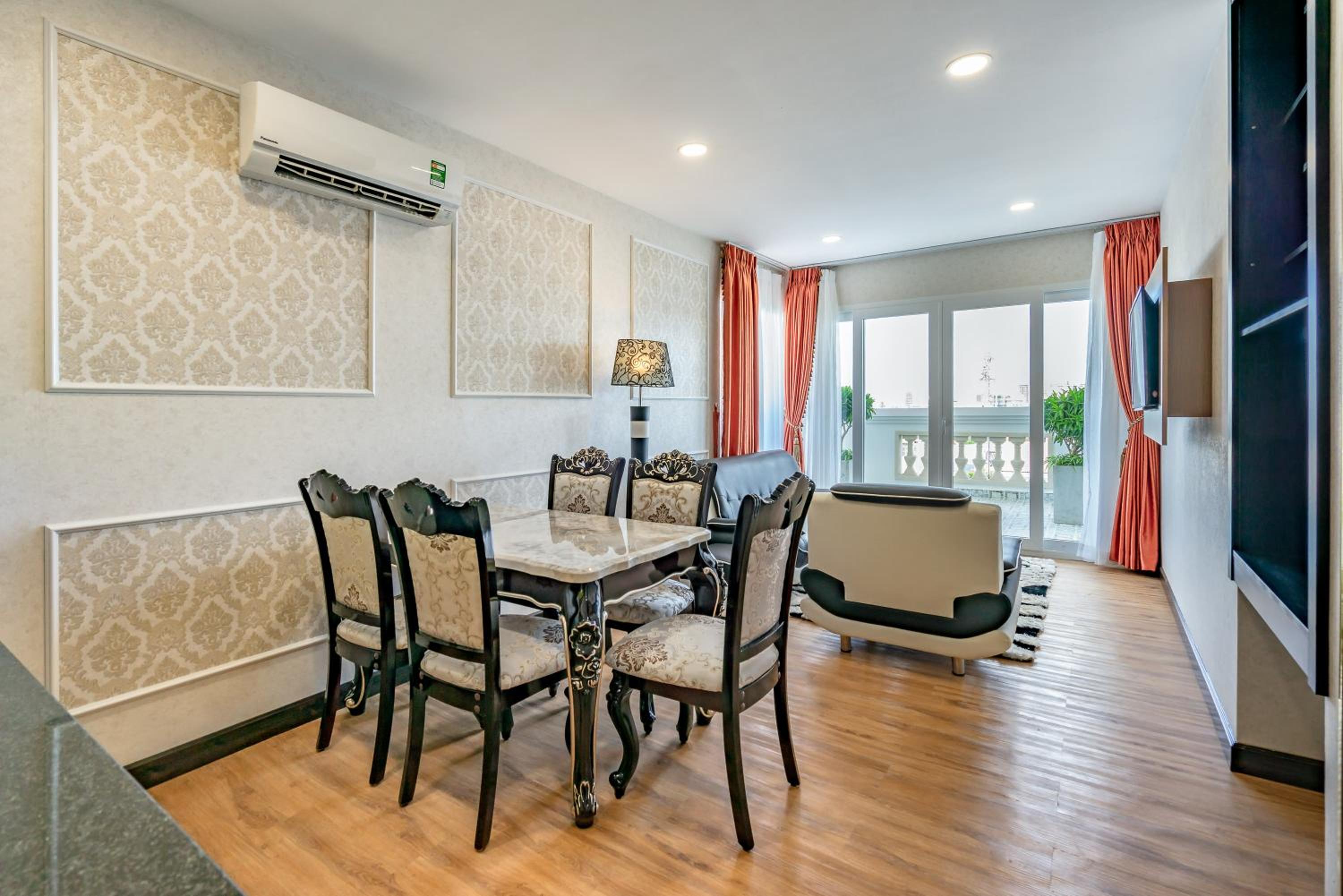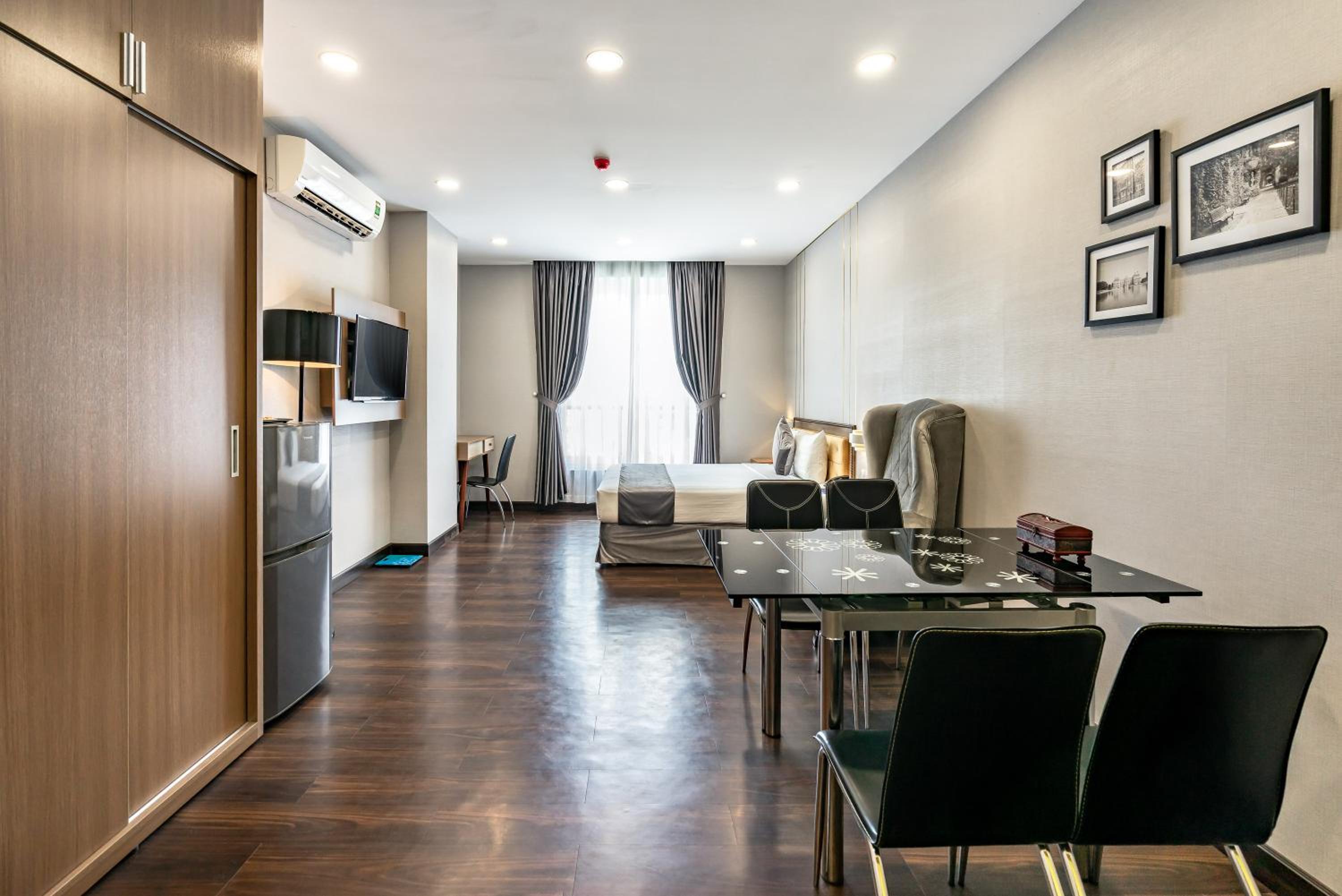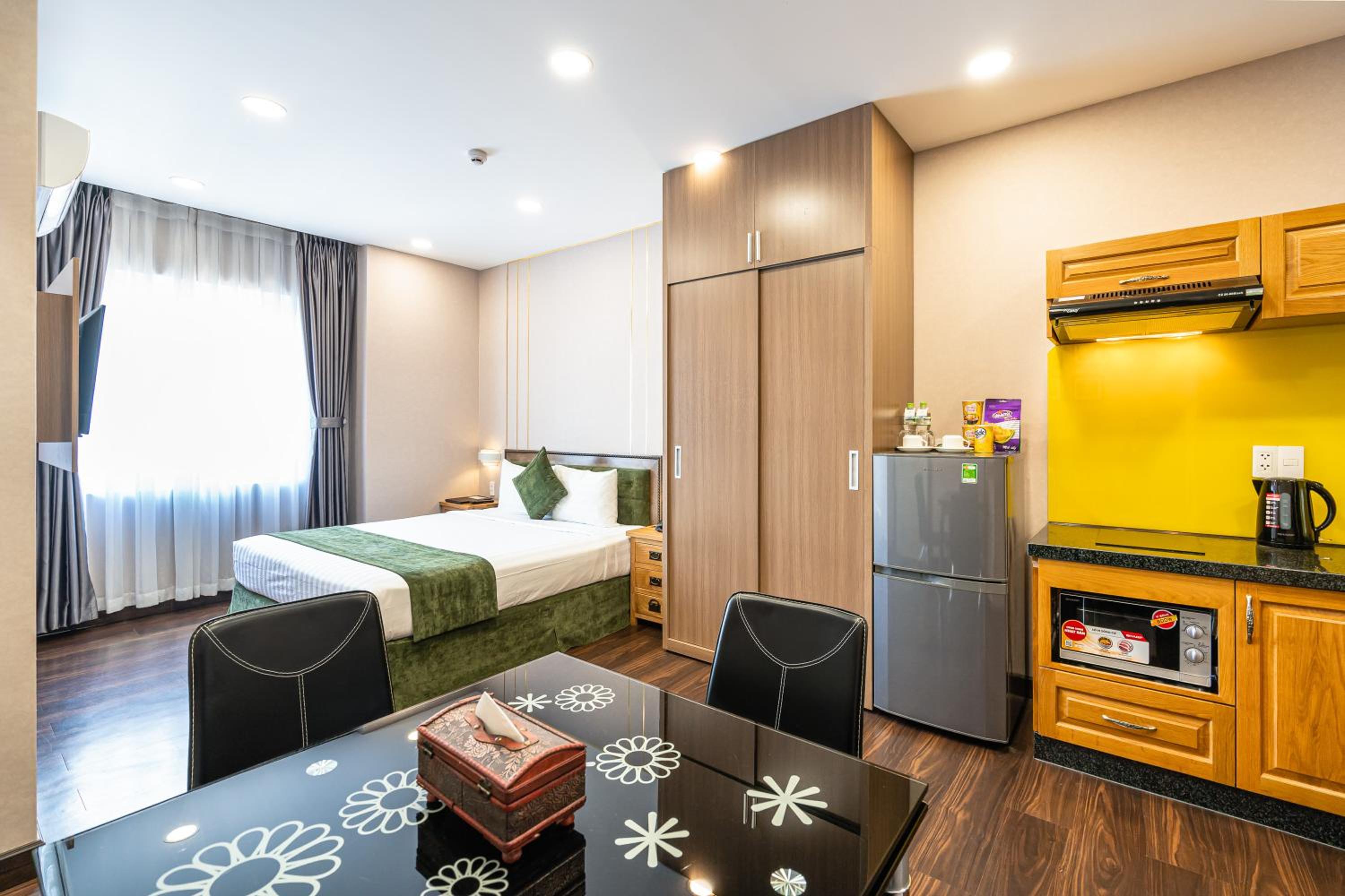 Guests can unwind in the fitness centre, stroll through the garden, or enjoy the fresh air on the terrace. The serene ambiance and modern facilities make Emerald Central a perfect choice for your stay in Ho Chi Minh City.