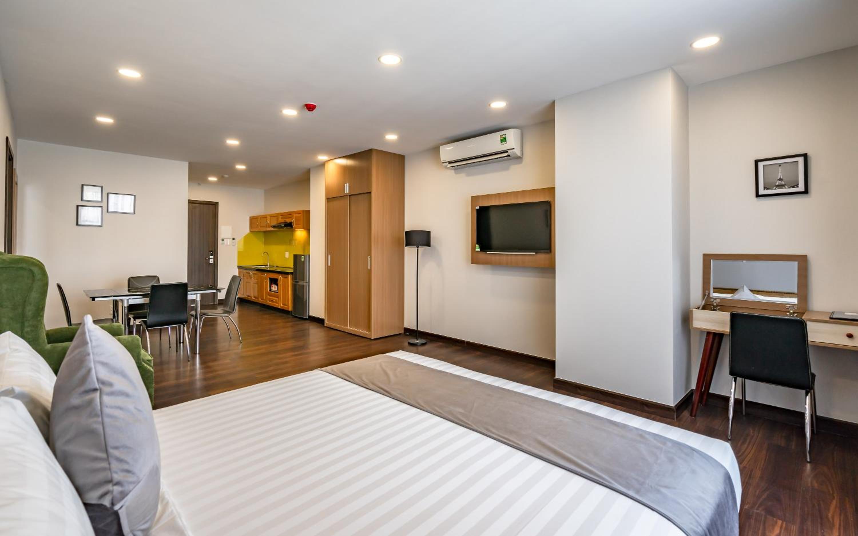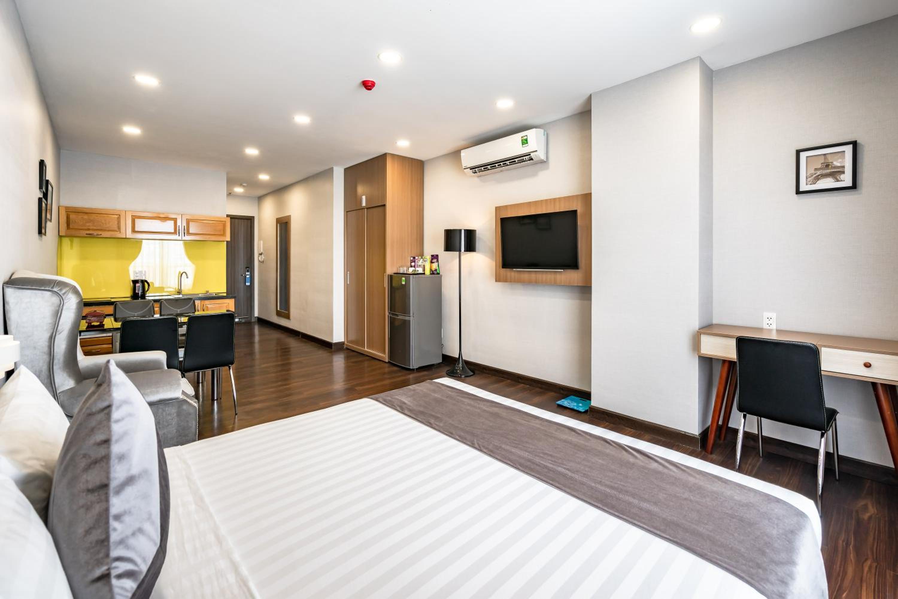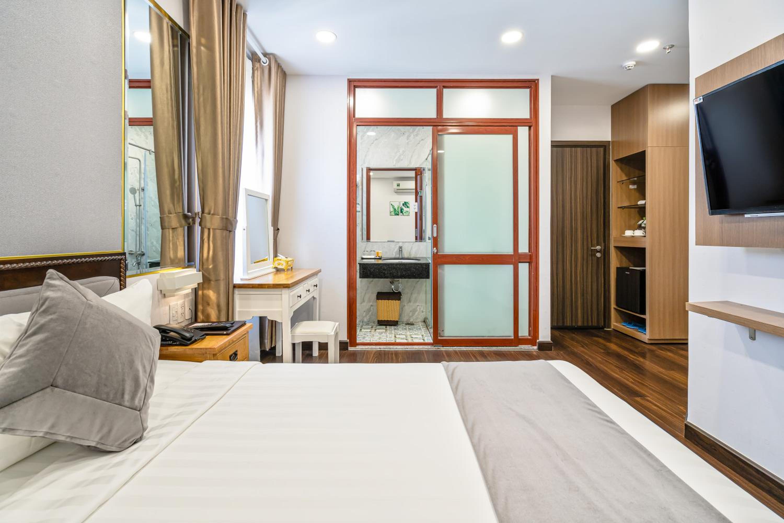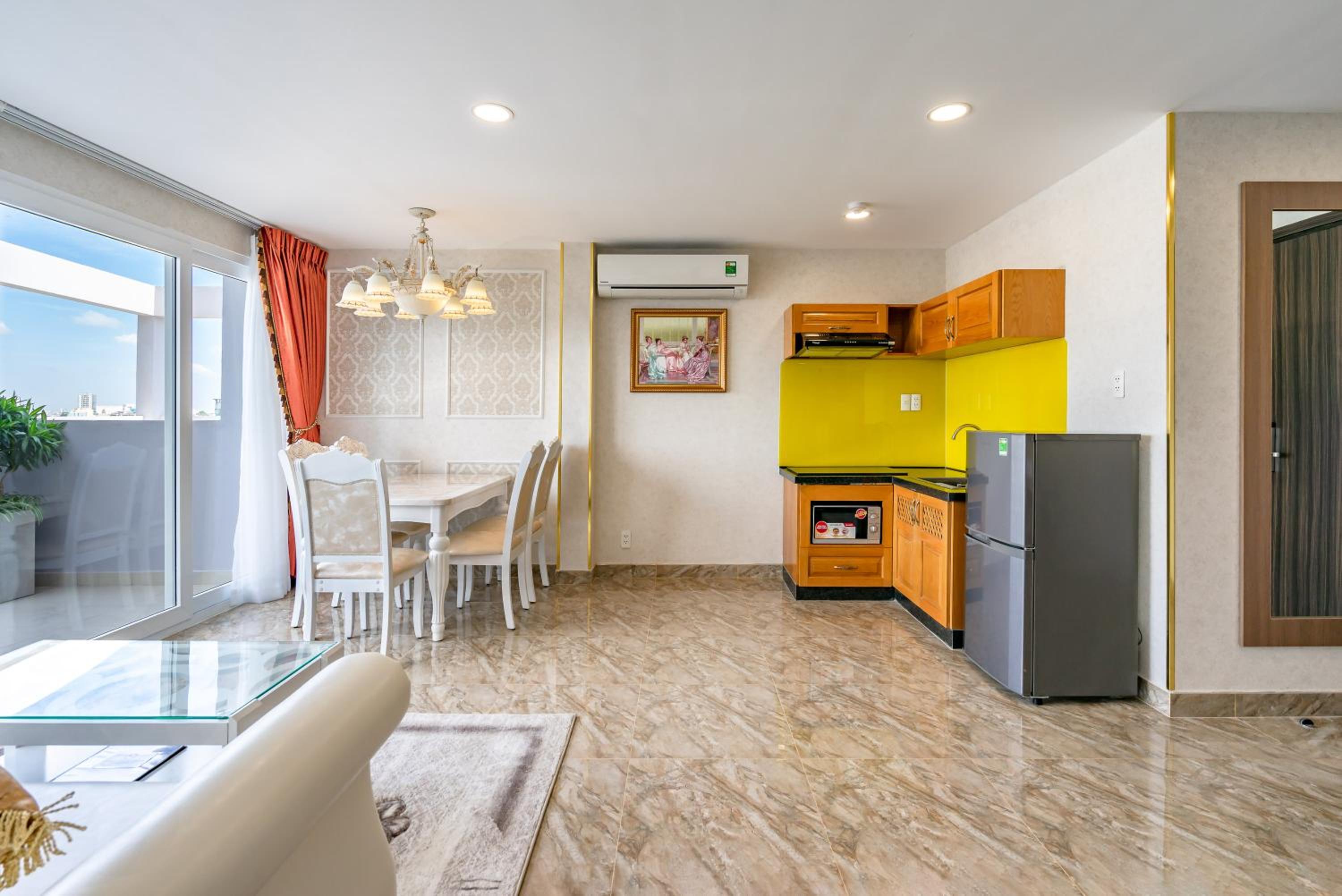 Guests can unwind in the fitness centre, stroll through the garden, or enjoy the fresh air on the terrace. The serene ambiance and modern facilities make Emerald Central a perfect choice for your stay in Ho Chi Minh City.