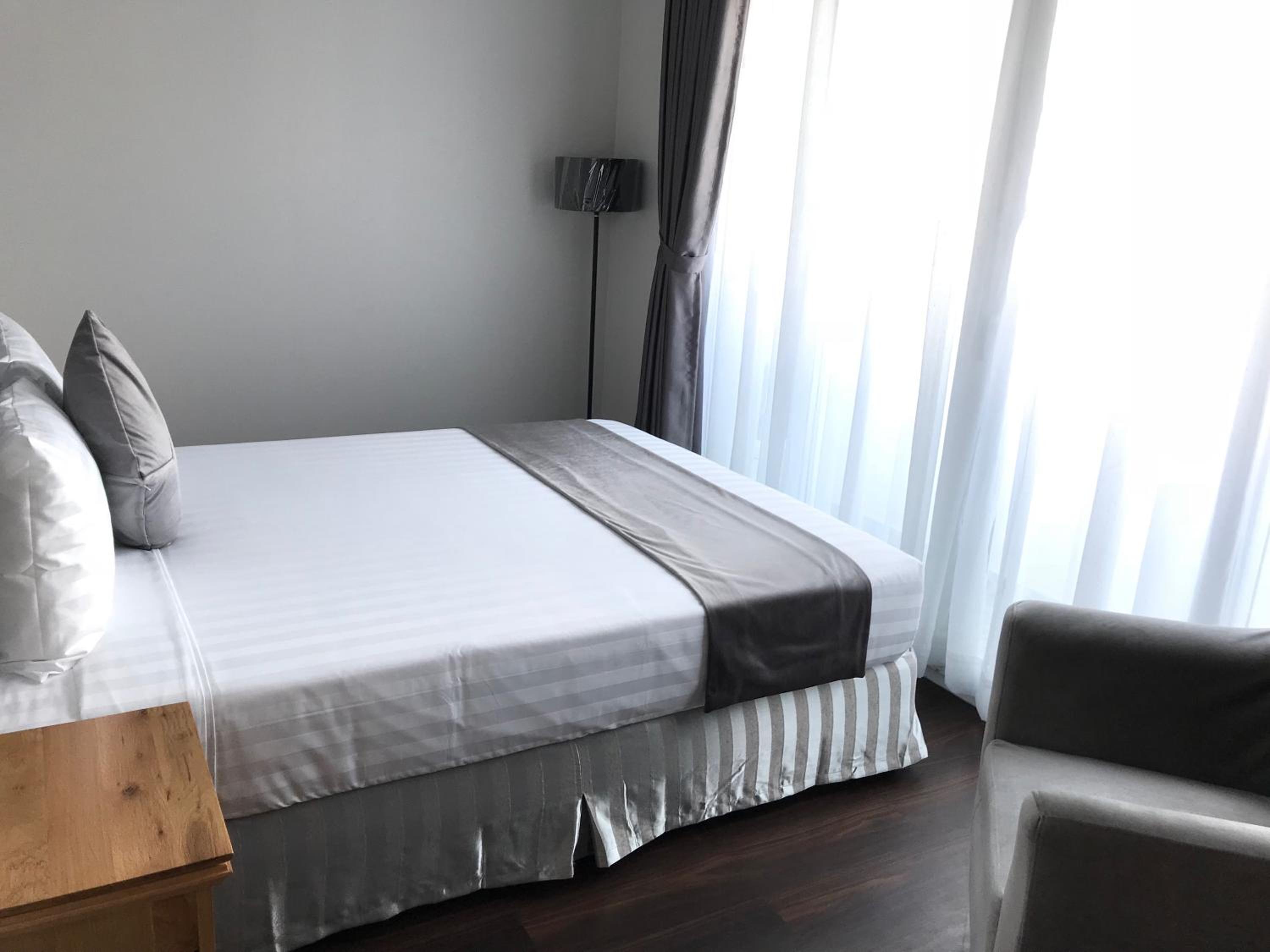 We used the two bedroom, two bathroom apartment with balcony which was large and comfortable. The staff was very helpful and friendly. The breakfast is delicious. The location is great. We used the same hotel twice during our 3 week trip. We recommend it!
