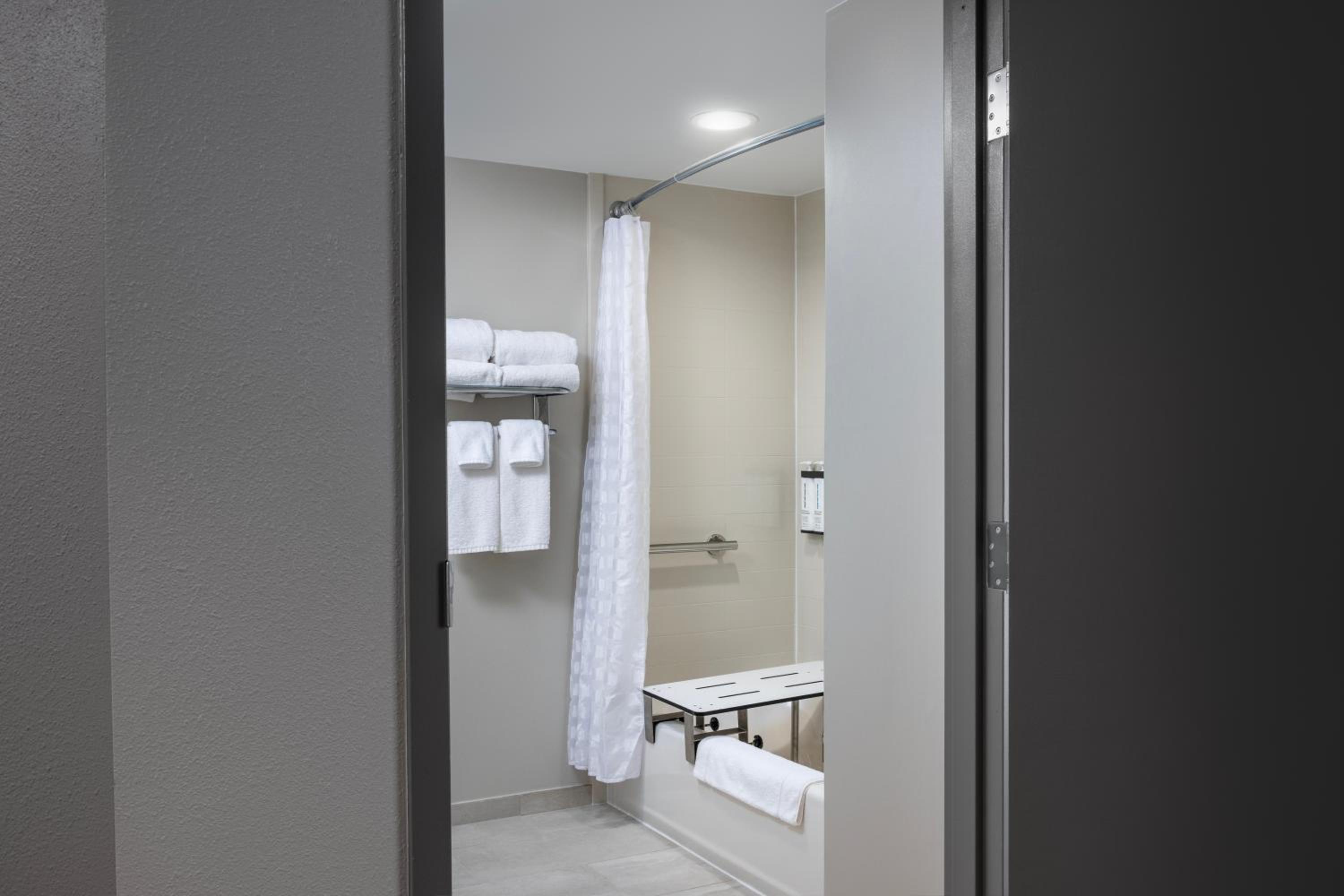 The room was not up to my expectations. It was cold even with the heat turned up. Why would the hotel not have winter comforters on the beds. It was thin blankets not meant for the winter time. The guests across the hall from us had a barking dog for 30 to 45 minutes. They left their room and the dog must have been sad, scared, or lonely. The bathroom had no heat because there was no vent. You’re relying on a heat lamp that you have to turn on to warm up the bathroom. Not a fan to say the least. The bathroom was too small, you could barely close the door without standing in an awkward position. Just not up to my standards at all. Won’t be returning.