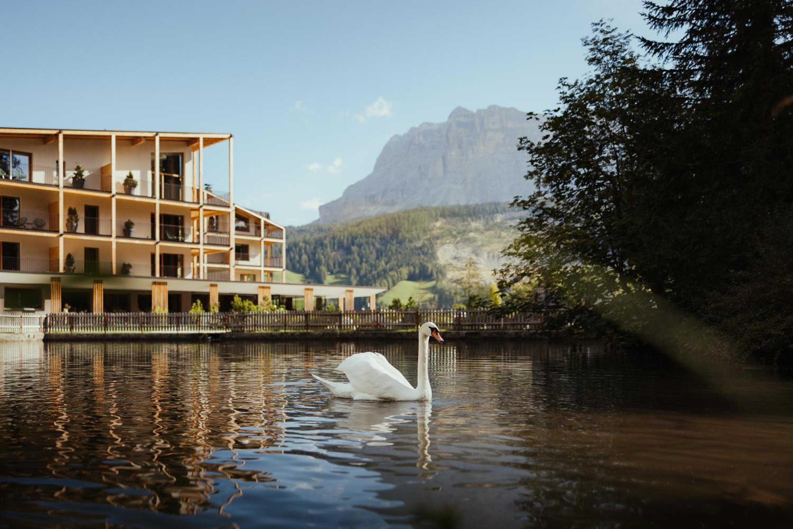 Hotel Lech Da Sompunt offers a picturesque setting overlooking a serene lake and provides convenient ski-to-door access to the Sponata ski area.