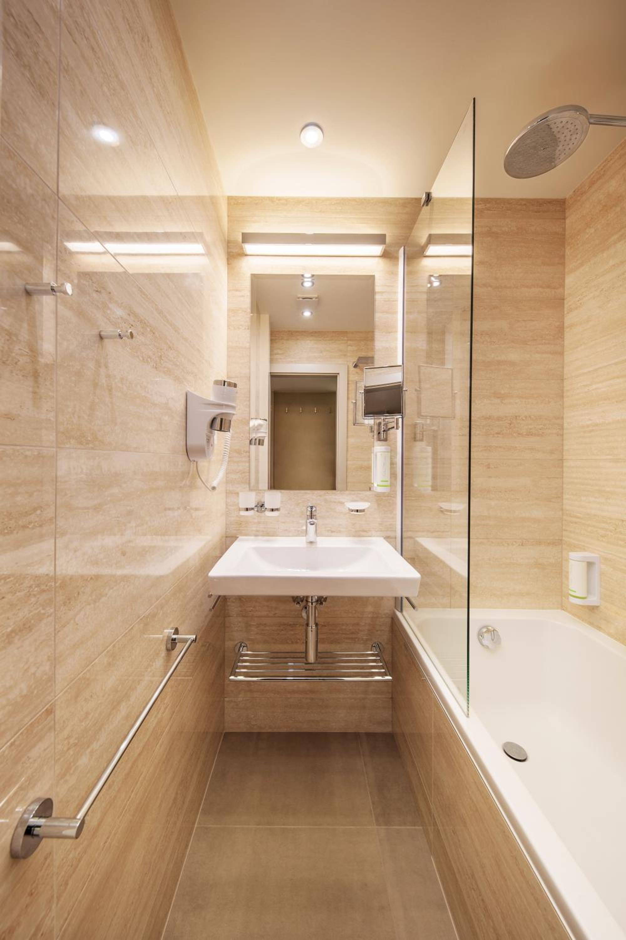 Pekné čisté útulné novo zrekonštruované izby. Personál absolútne maximálne ochotný. Raňajky boli ladené spíš do slana, ale chutné. Pomer cena/výkon super. Využili sme aj parkovanie, ktoré je ve vnitrobloku hotela, vchod a manévrovací prostor je veľmi veľmi úzky pre väčšie autá. Ale personál hotela pri vyparkovávaní ide s vami a ukazuje vám. Celkovo super na víkend v Prahe.