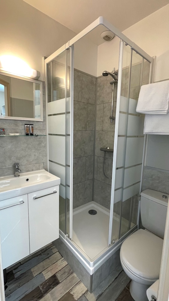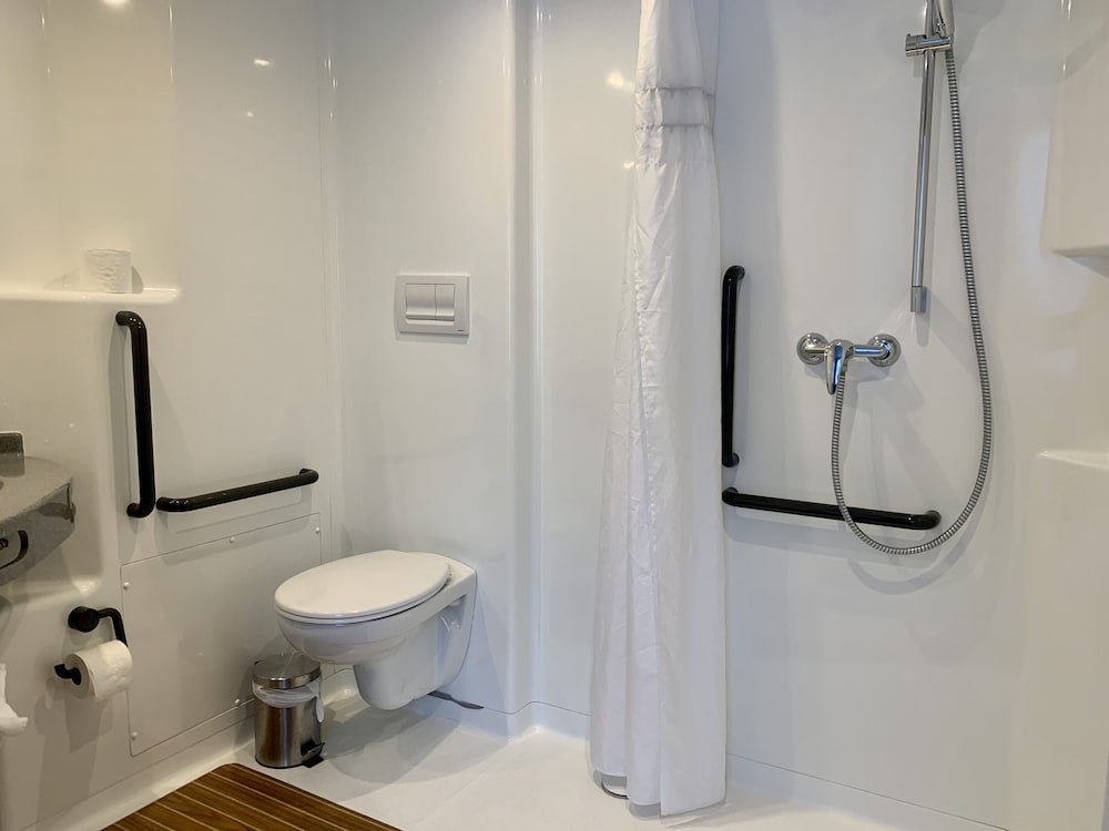 L’hébergement était surtout décevant au niveau de la salle de bains. la salle de bain est extrêmement petite, la cuvette des toilettes est coincée entre la le lavabo et la douche de . Telle sorte que lorsque l’on est assis, on ne peut même pas utiliser le papier toilette car à moins d’être maigre lacuisse appuie sur le Rouleau . D autre part le lavabo ressemble plus à un lave-mains qu’à un lavabo