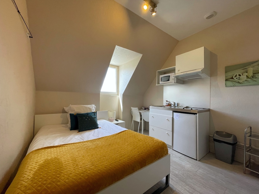 nous pensions avoir réservé une chambre avec kitchenette, ce qui s'est avéré inexact mais ce petit désagrément a immédiatemnt été réglé avec la gentillesse de l hôtesse ( apport d une micro onde et un peu de vaisselle, merci encore )