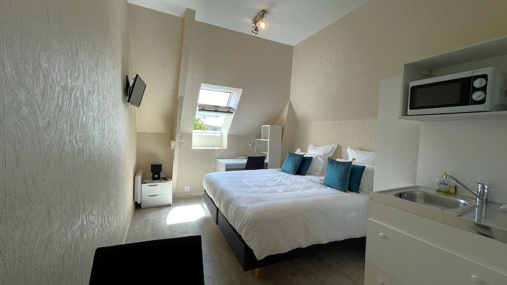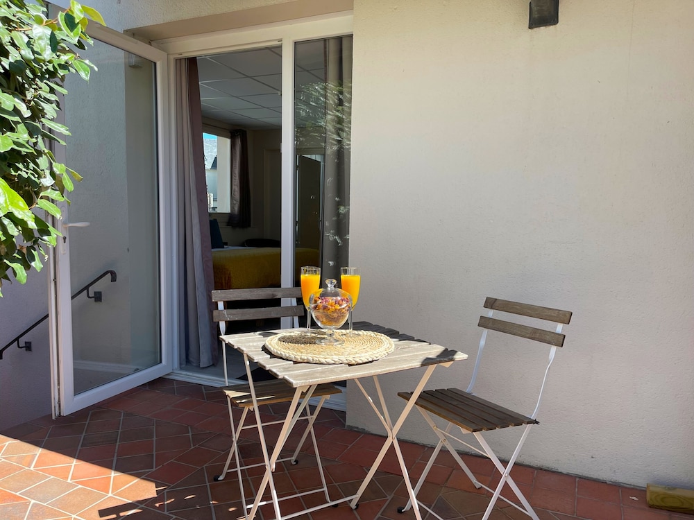 Très bon accueil. Hôtel bien situé en face des remparts de Guérande. La literie est bonne. Le petit déjeuner nous a satisfait, pain et vienoiseries fraiches. Seul bémol, notre chambre donnait sur le street food, nous avons profité des odeurs de fritures et du bruit de repli des tables et chaises de la terrasse. Si la chambre avait été climatisée, nous n'aurions pas du ouvrir la fenêtre.