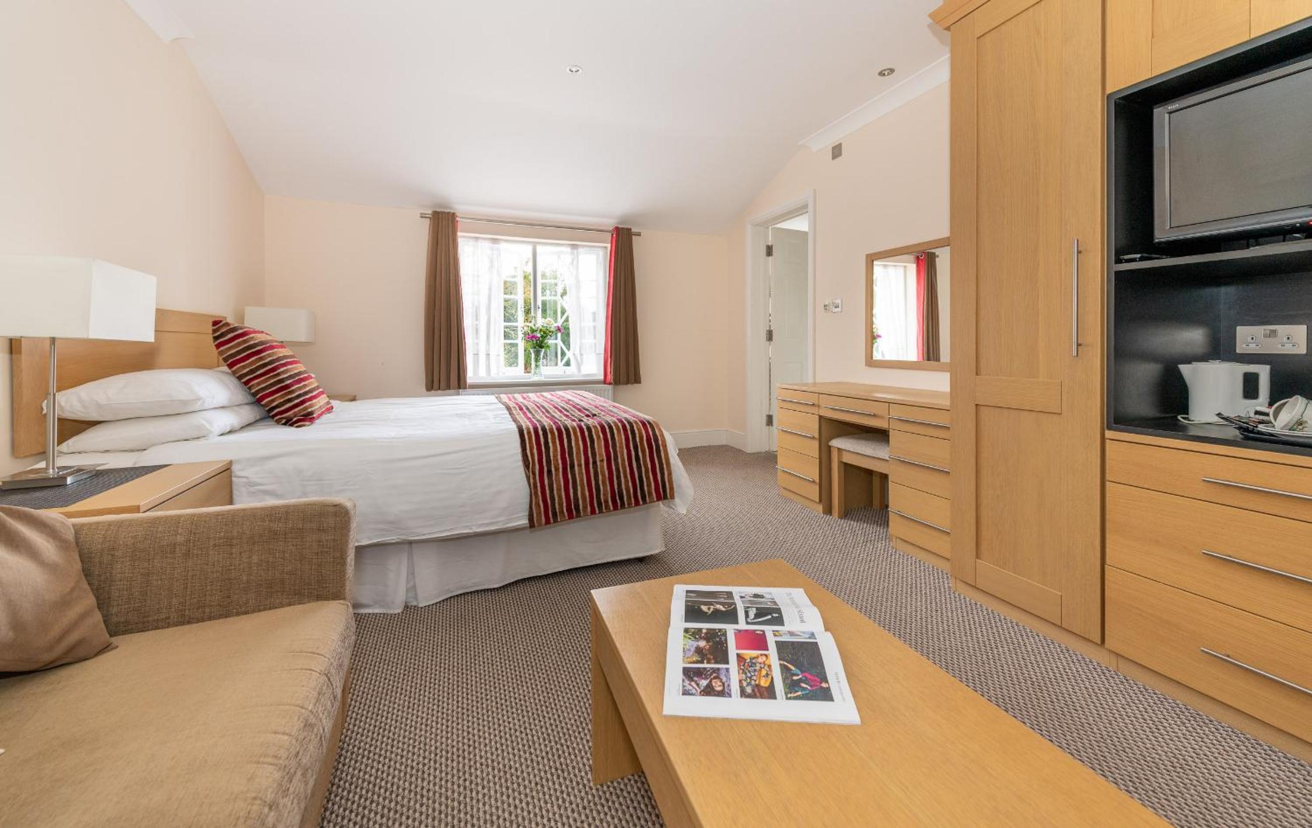 Luxurious Accommodations: Experience classic décor and modern amenities in our cream-toned rooms, complete with tea/coffee facilities and flat-screen TVs.