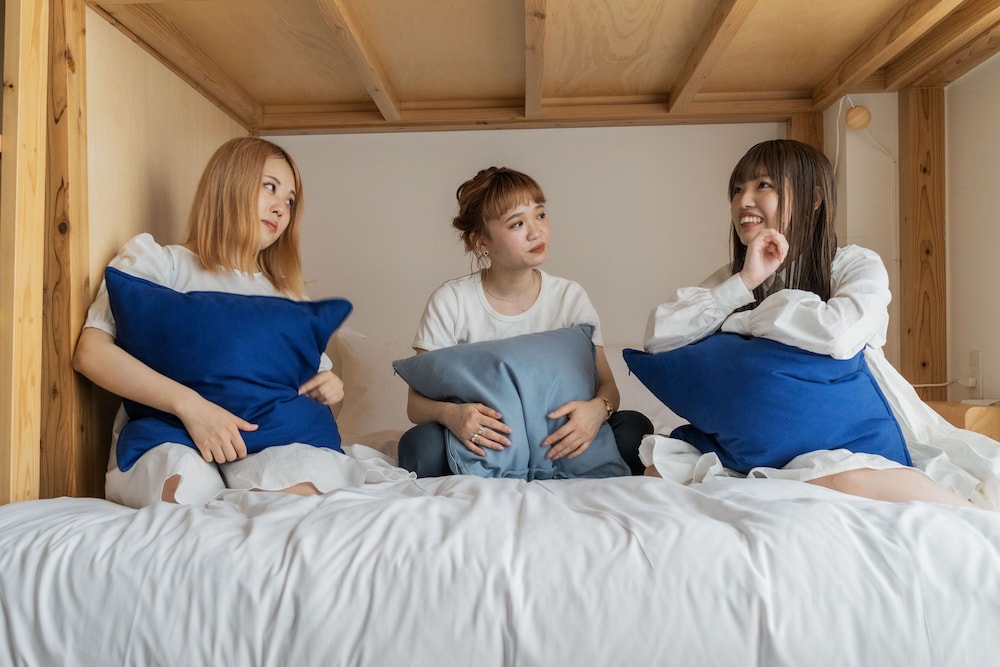 5人で泊まったが、部屋に座るところがなく地べたかベッドに座ることになります。