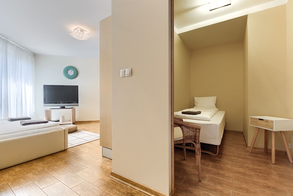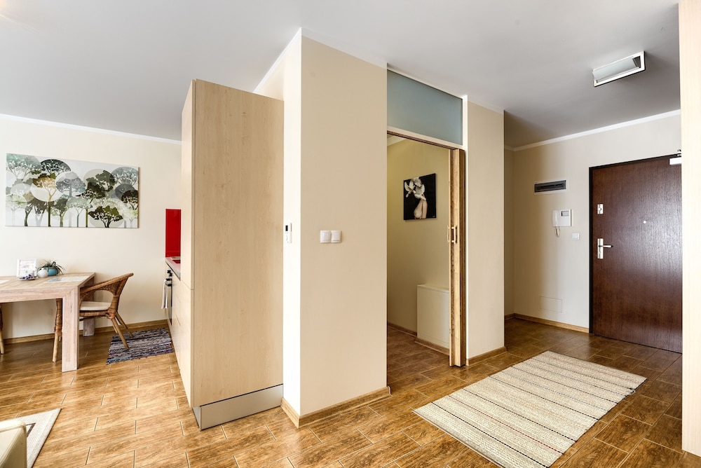 Der Schlüssel-Code wurde nicht wie in der Buchung angegeben 24 Stunden vor der Anreise übersendet sondern erst kurz vor dem Einchecken. Ein großes Problem da ich keinen Zugang zum Internet hatte. Das Appartement war augenscheinlich gut, doch dann stellten wir einige unangenehme fest. Die Matratze des Doppelbettes war auf einer Seite total durchgelegen, so dass ich das Einzelbett benutzen musste, es gab dafür aber kein Bettlaken. 2 von den 4 Korbstühlen waren defekt und nicht benutzbar, im Bad gab es keinen Duschvorhang und eine schriftliche Information mit Hinweisen auf die Benutzung der elektrischen Geräte wie Fernsehen, Kaffeemaschine etc. gab es nur in Polnisch. Das einzige positive ist die Lage des Appartements, zentral und gute Anbindung zur Tram.