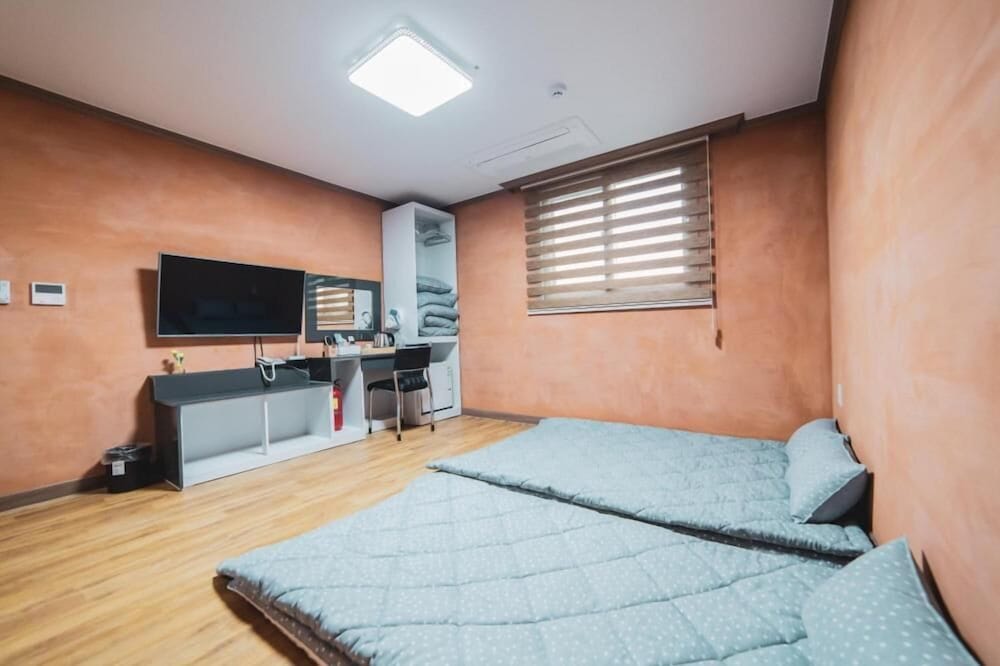 순천에서 더블룸 최저가인듯. 짐도 무료로 맡겨주시고 주변이 모텔촌인건 좀 별로였지만 가격대비 침대도 넓고 조용해서 좋았어요. 바디워시 샴푸 린스 다 좋았어요 따로 안챙겨가셔도됩니다. 딱 한가지 단점은 화장실이 더러웠어요. 세면대나 욕조가 물때가 있었어요. 심하지는 않았네요. 전기포트 냉장고 주방싱크대 전자레인지 다 있었습니다.