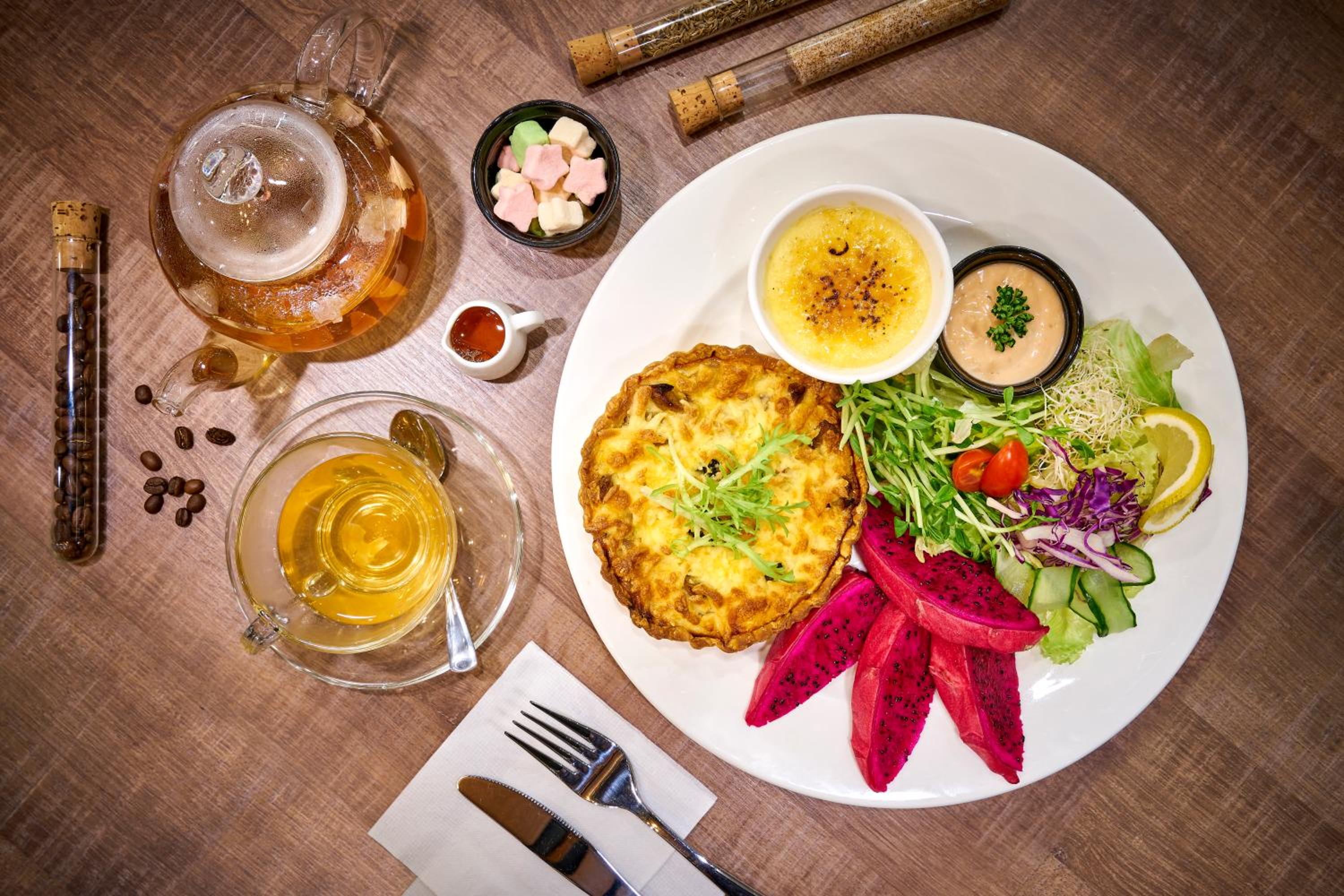 早餐選擇種類多元,中西式、沙拉、水果、飲料皆有可選。
