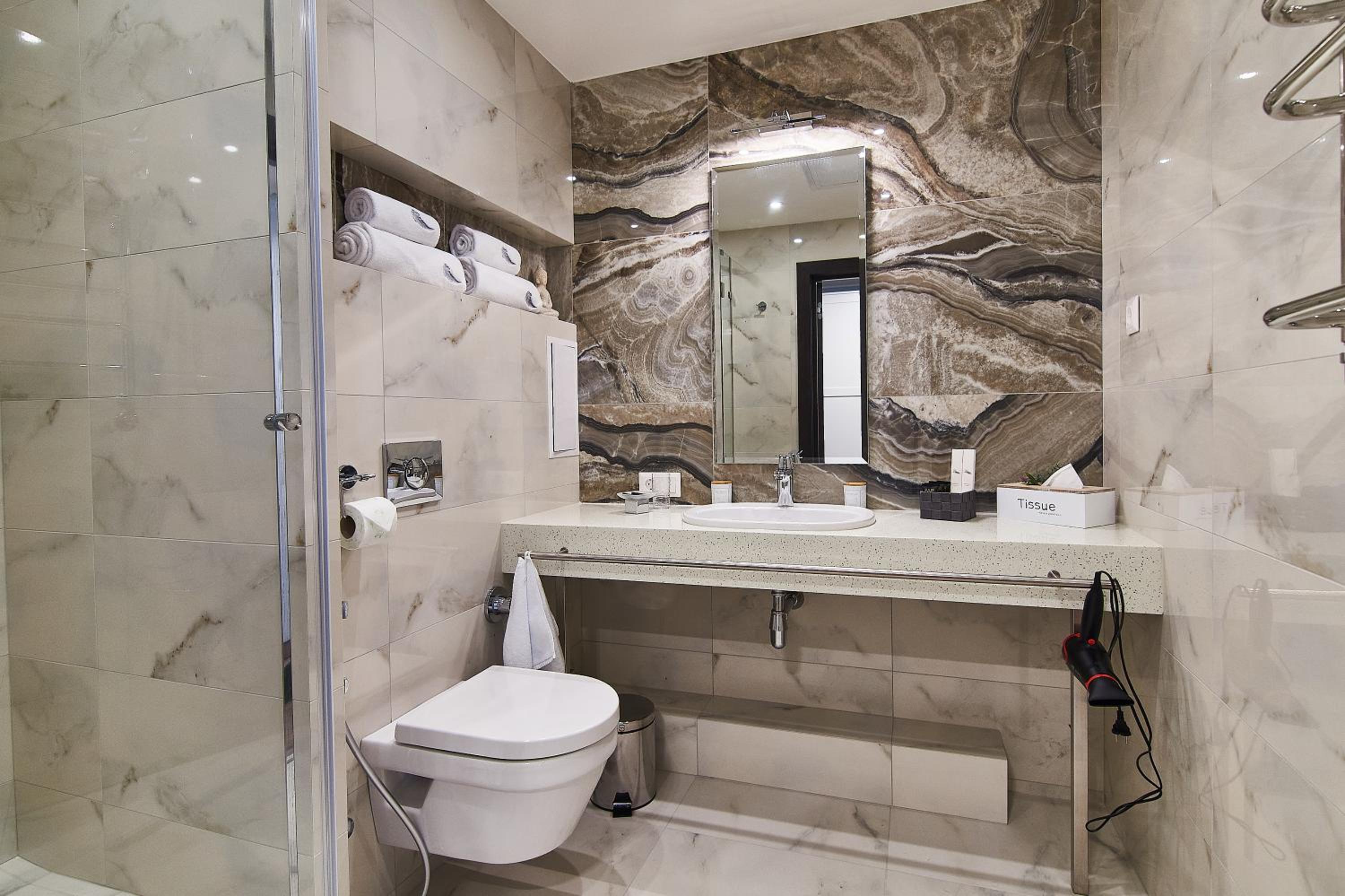 Привітний персонал, чисто, гарно, є укриття. Світло і тепло є завжди, ресторан на першому поверсі та сніданок включений