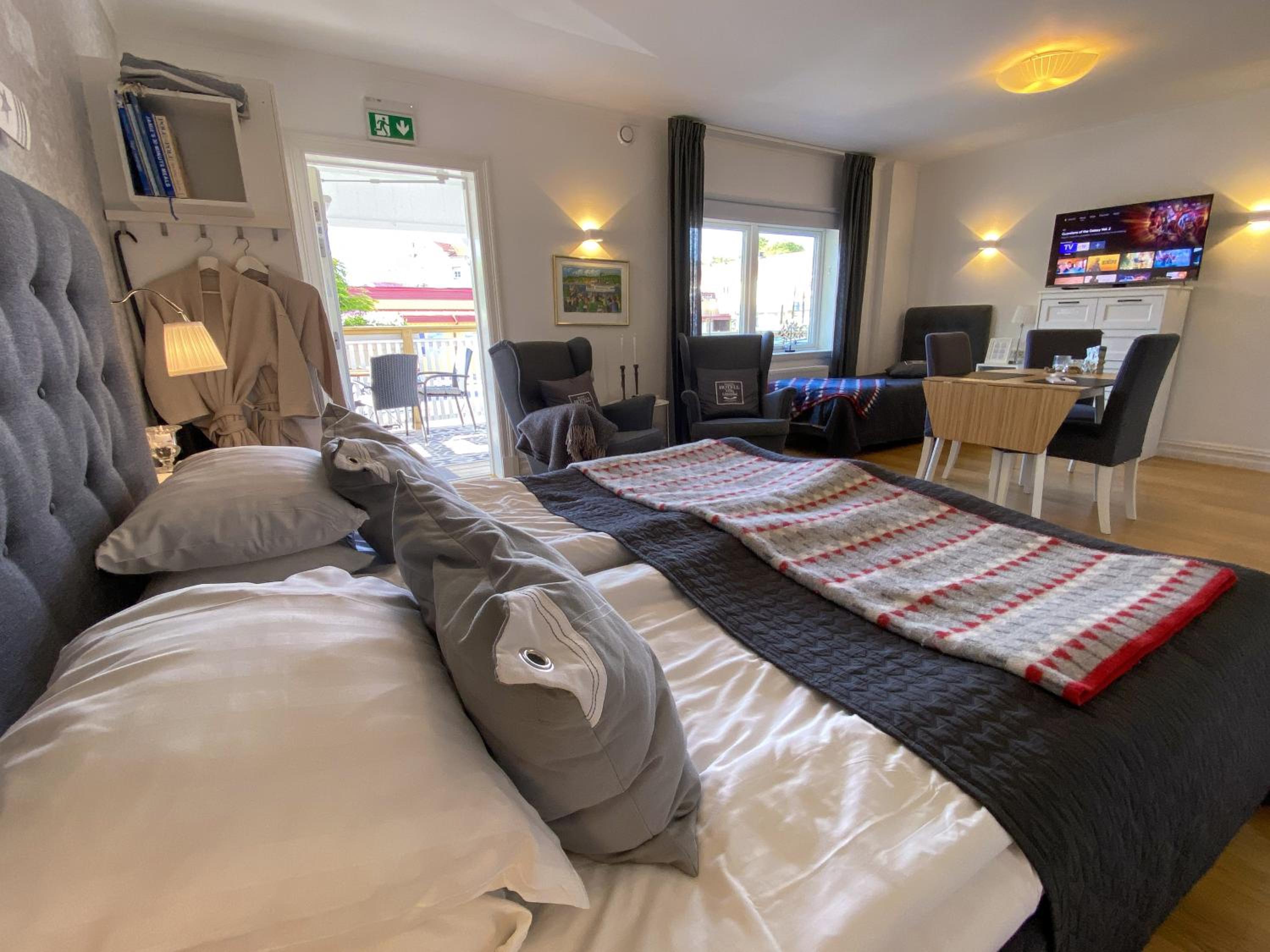 Jag och min vuxna dotter stannade en natt och hade med oss hund. Vi alla älskade det och hade gärna stannat längre. Mysigt rum med härlig utsikt, skön säng och fantastisk frukost. Grundsund så fint även om det var i slutet på säsongen. Trevliga och fin service!