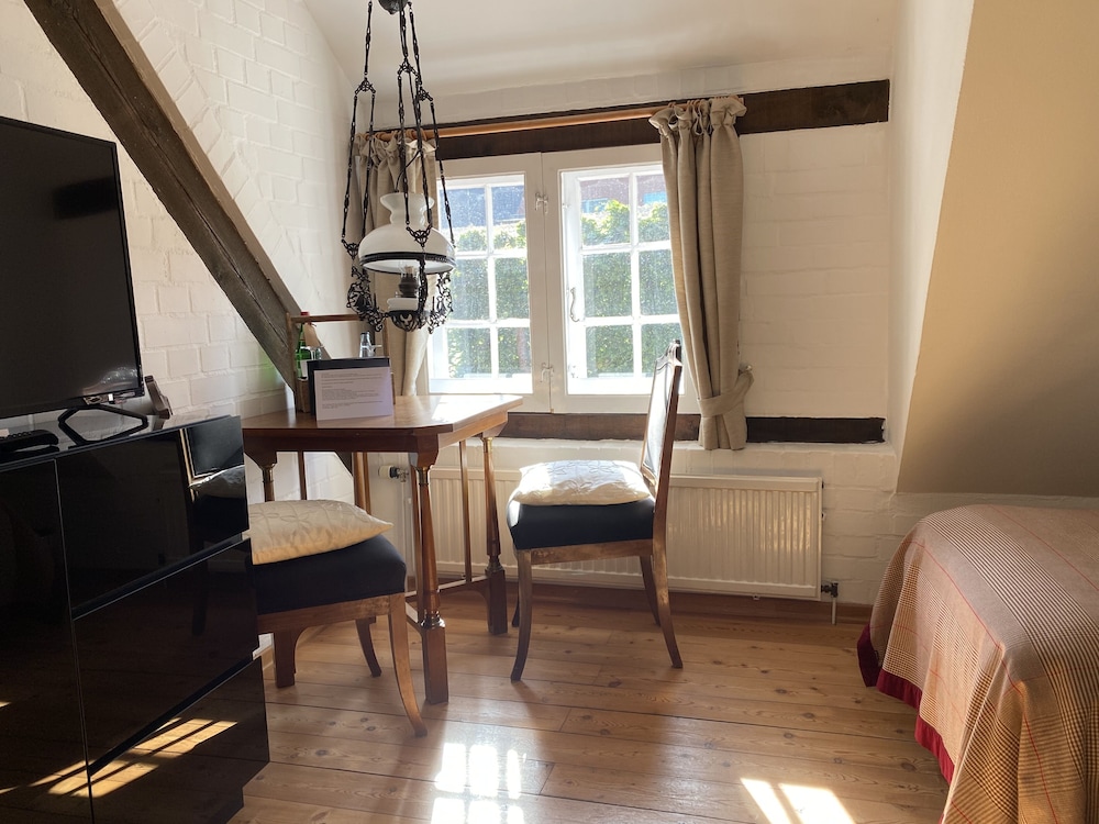 Das Hotel ist ein sehr schönes Objekt von der Außenansicht! Auch der Hof und die Umgebung sehr schön! Wir waren im Erdgeschoss in einem winzigen Zimmer untergebracht, welches leider sehr hellhörig war. Dadurch war die Nacht nicht so erholsam.