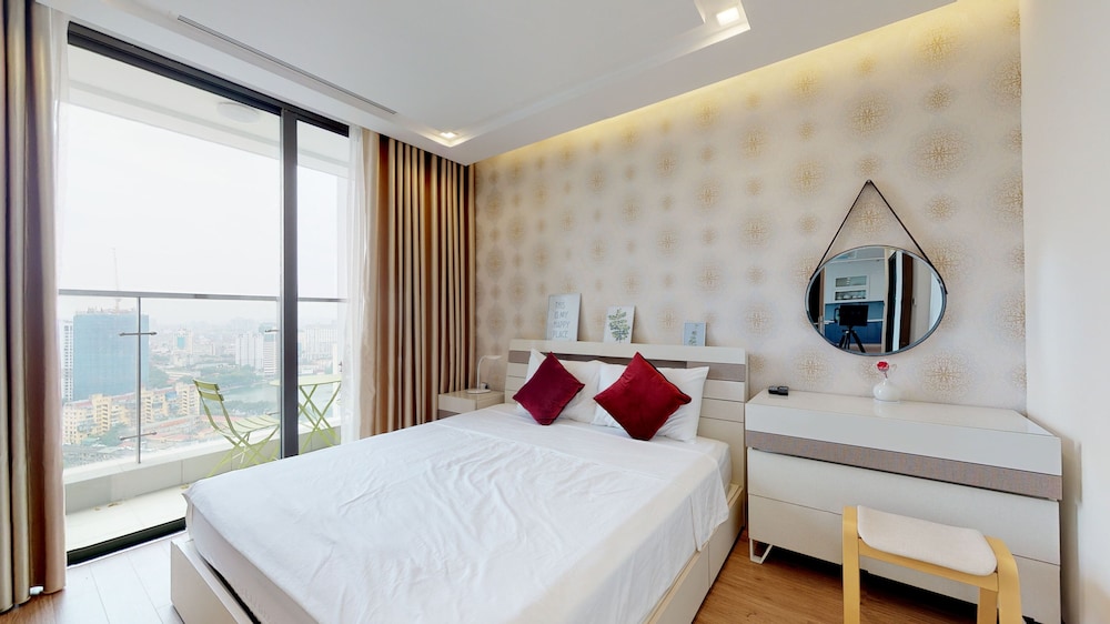 Very good value for money accomodation with convenient access to Vincom shopping and dining and grocery store. Communication with the landlord or their agent was fast and clear. I asked for some forks, and got them in 30 minutes. Instructions to enter required no followup clarification. Actually, I checked in and out without ever seeing anyone. The view from the bedroom is mesmerizing and on a clear day you can even see the friendship bridge. The Iron and ironing board well well appreciated. The extra lock on the door didn't work but Hanoi, especially the central area is super safe so I had no worries. The keyless entry also is appreciated since it means one less card or key to carry around. I will likely stay here again.