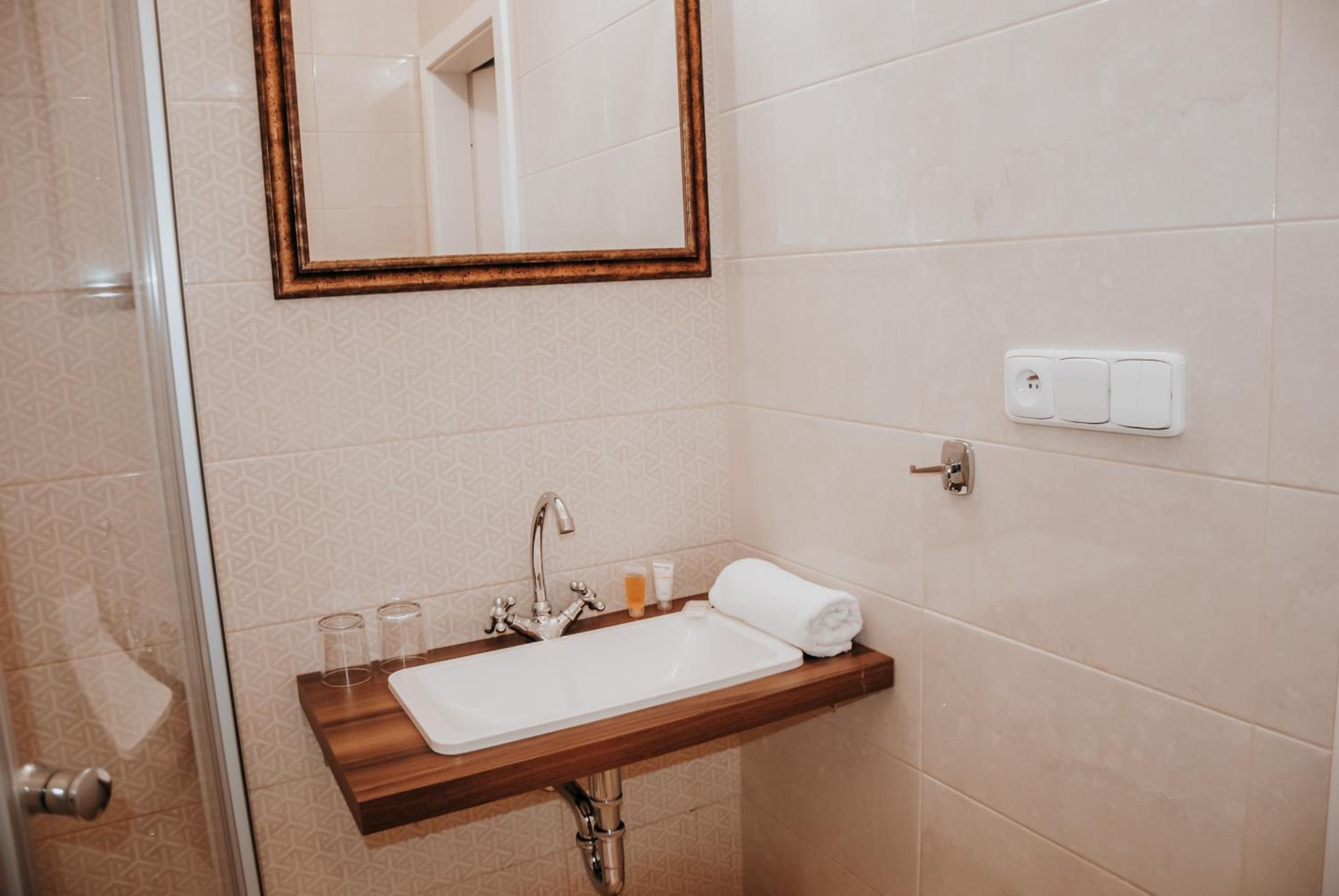 This is an amazingly beautiful hotel in the heart of Novy Jicin. We had the room with 3 beds, which was clean and the bathroom was beautiful. Restaurants and amenities are close by. The staff was helpful and nice. Breakfast was plenty, coffee is amazing! Free parking in front of the hotel.