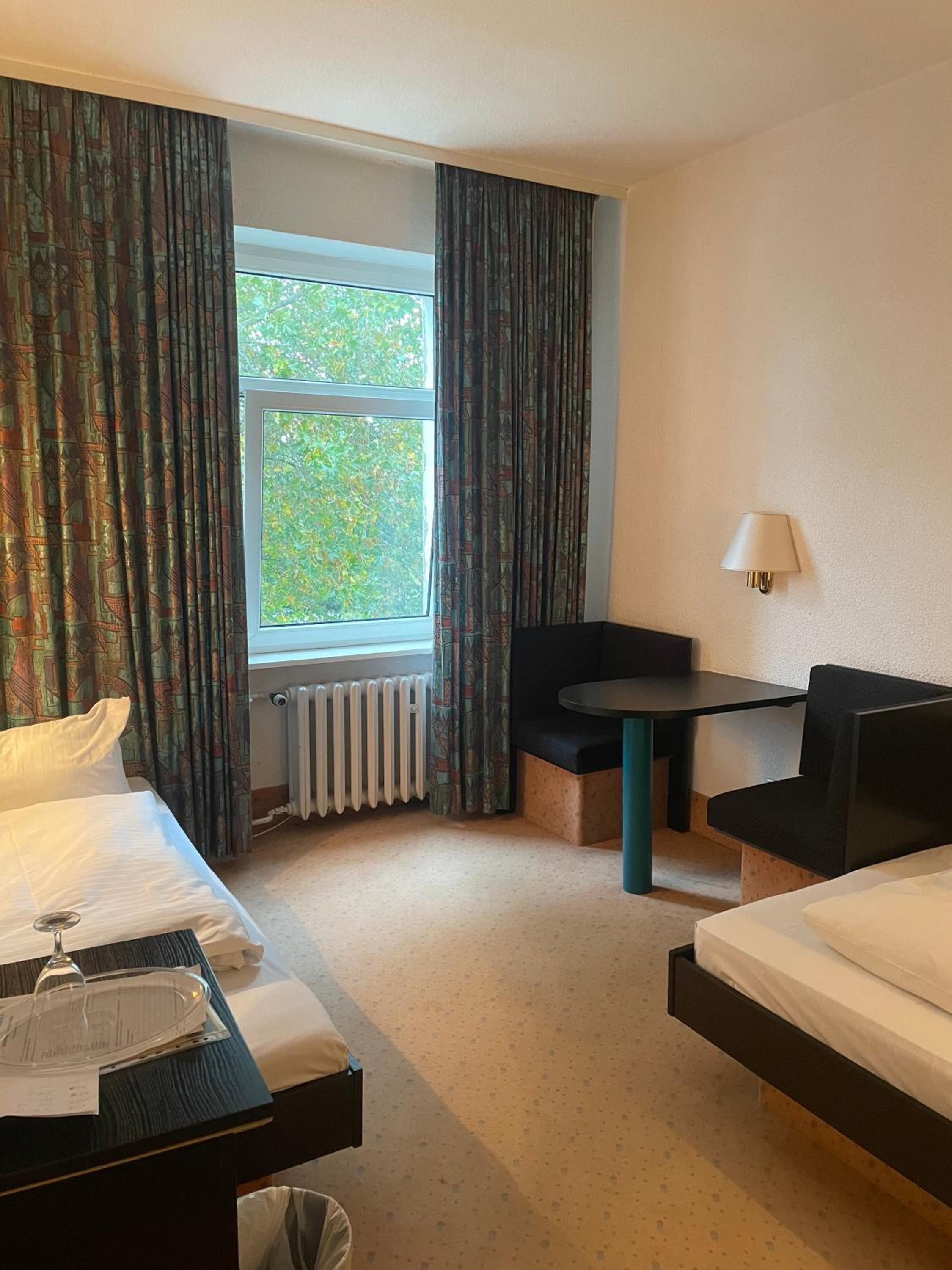 Hotel mit Retro- Charme der Neunzigerjahre, es besteht Renovierungsbedarf. Liegt in einem ehemaligen Industriegebiet, nachts Geräusche einer Fabrik zu hören.