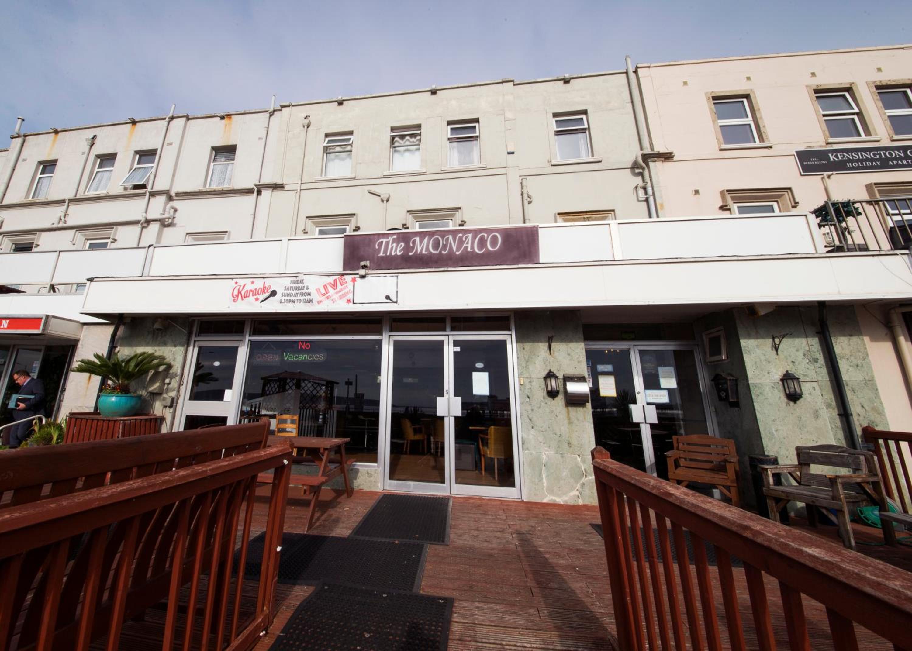 What a tip. Very neglected! On pulling up the hotel signage was falling down, the wooden furniture outside needed a coat of paint, weeds and black slip proof matting torn apart. The glass to hotel was dirty, signs on door to check in via the hotel next door. The manager here was very pleasant, he said he managed both. He showed us into the Monaco which looked like it was in a time warp.