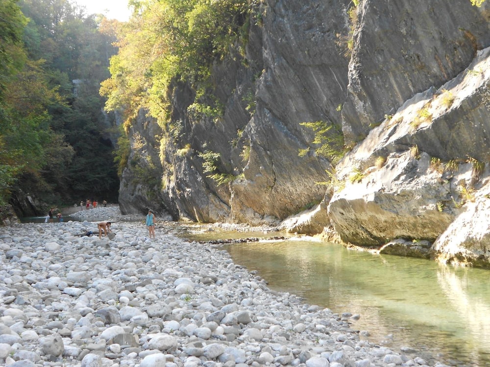 Sehr freundliche Vermieter. Fußläufige Entfernung zum Hisa Franco ( rechtzeitige Reservierung unbedingt erforderlich) Schöner Wanderweg nach Kobarid (ca. 3 km) und zu den dortiger Outdoor-Aktivitäten.