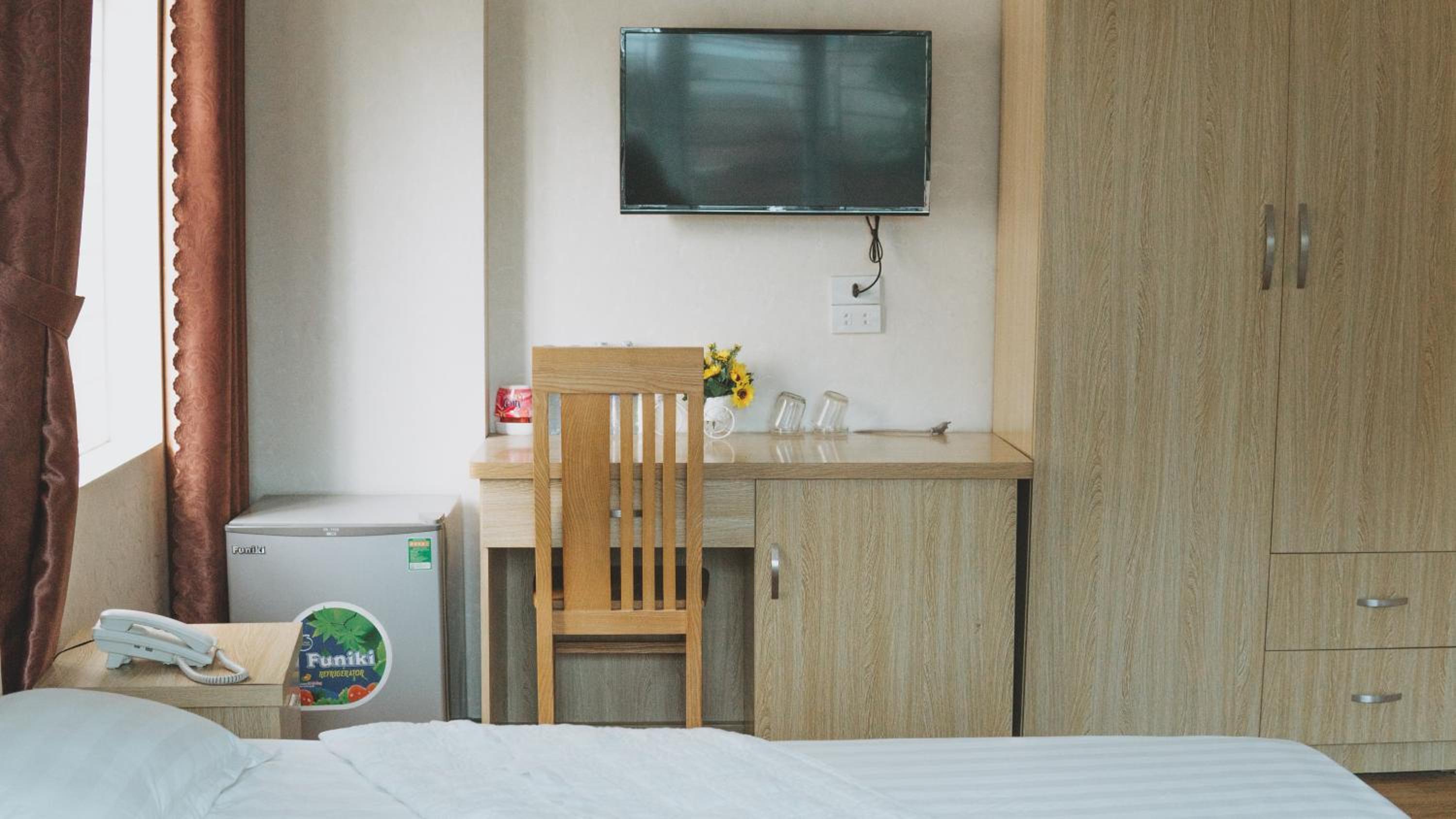Phòng có nhiều hỏng hóc nên được cải thiện (trần và tường hơi mốc và bong tróc; tủ, cửa sổ và rèm cửa bị hư,…).