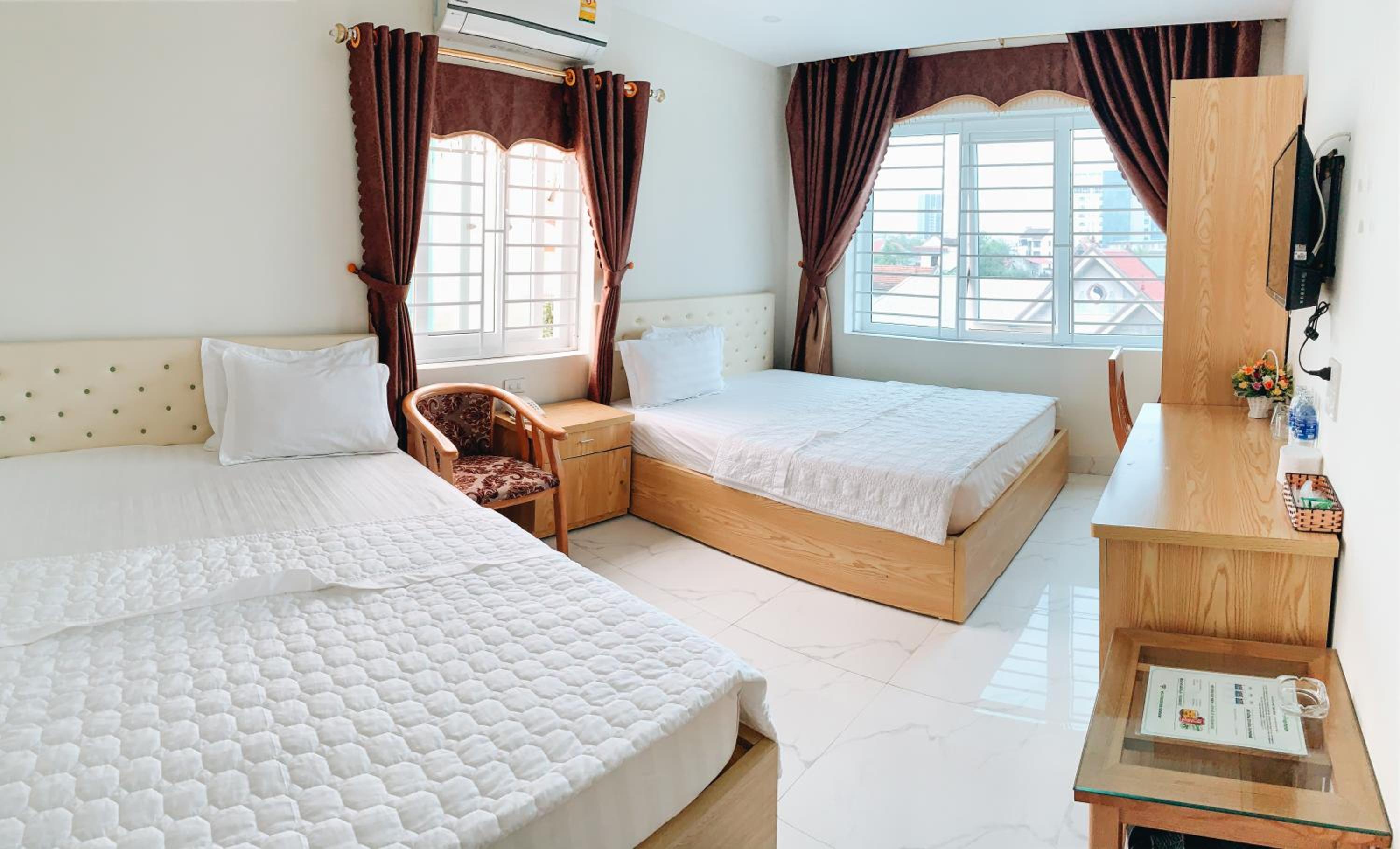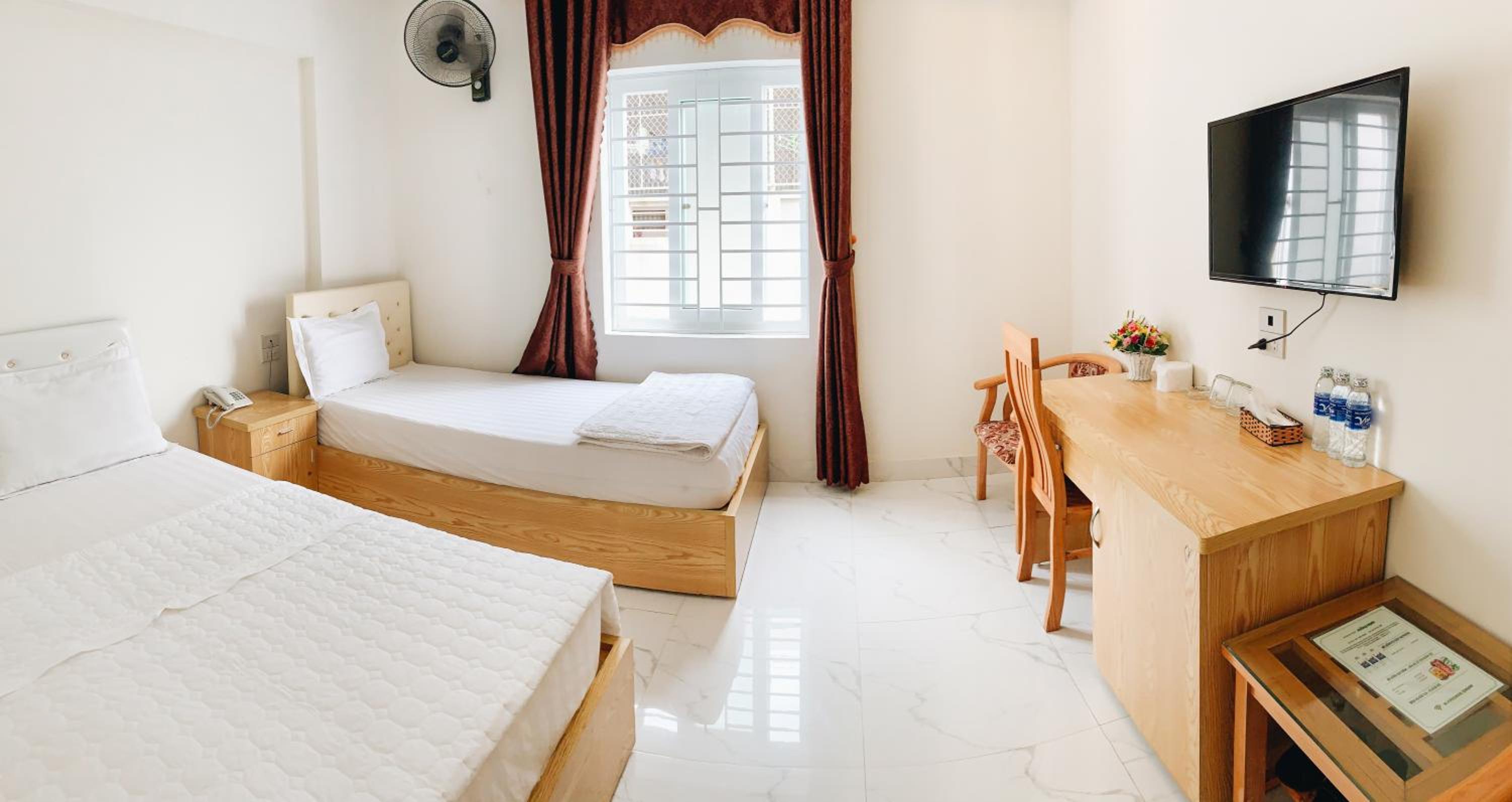 Experience Hoang Ngan 2 Hotel - TP. Vinh, where modern comfort meets convenience. Enjoy free WiFi, room service, and a 24-hour front desk. Relax in rooms with a seating area, flat-screen TV, and private bathroom. Stay cool with air conditioning and catch up on work at the desk.