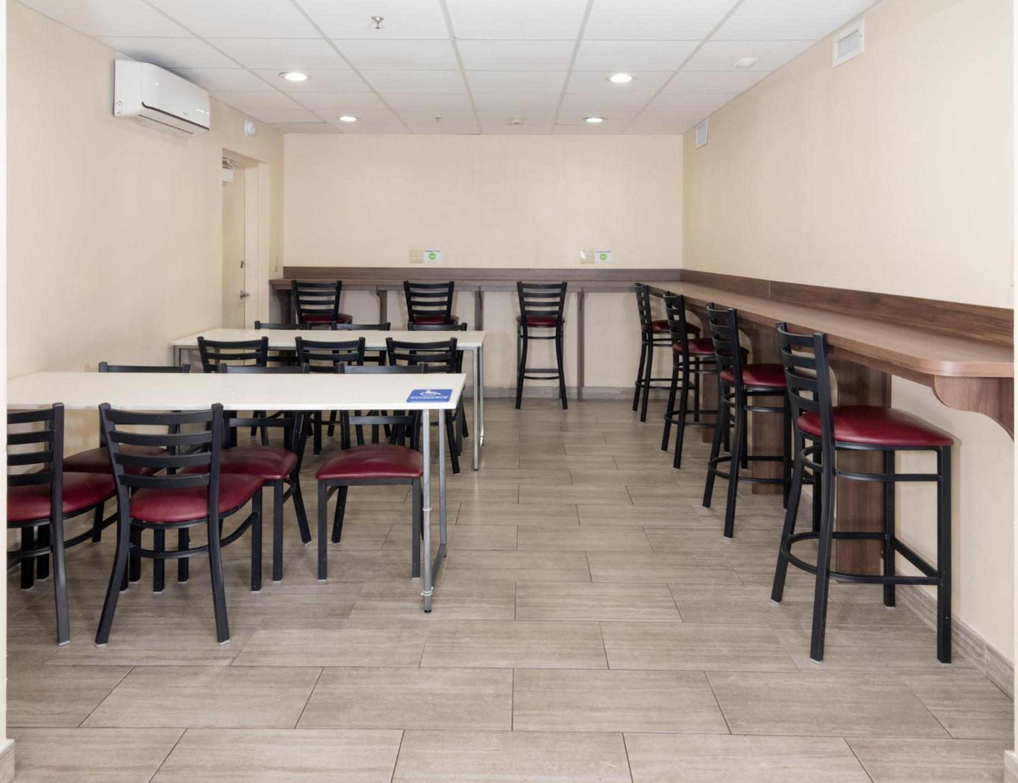 There was no restaurant. We were in a food desert. No room or maid service. Bathroom was dirty. Electric outlet beside sink area didn't work .