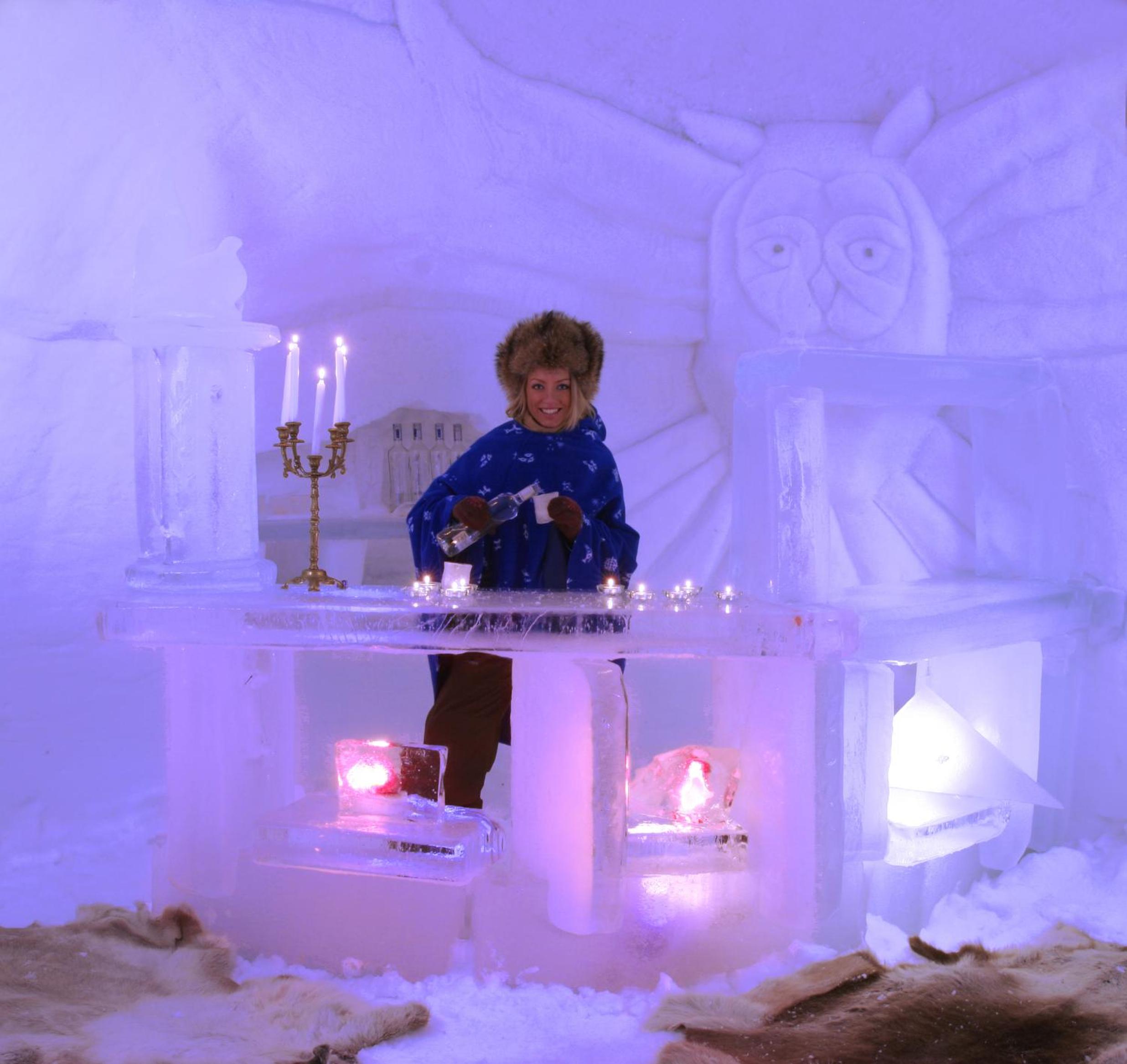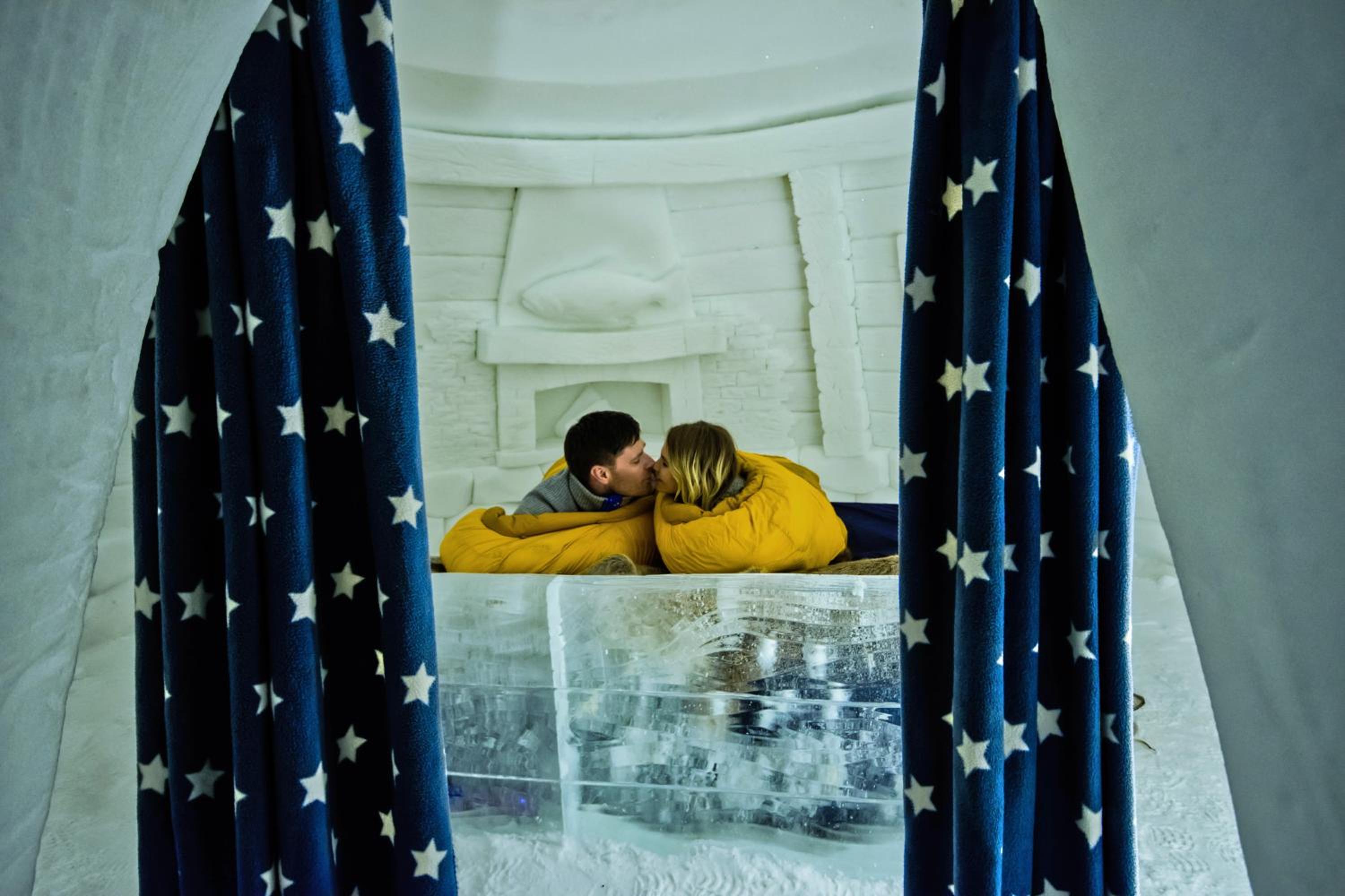 Experience a magical stay in intricately designed snow suites with thermal bedspreads and unique snow sculptures to keep you warm at night.