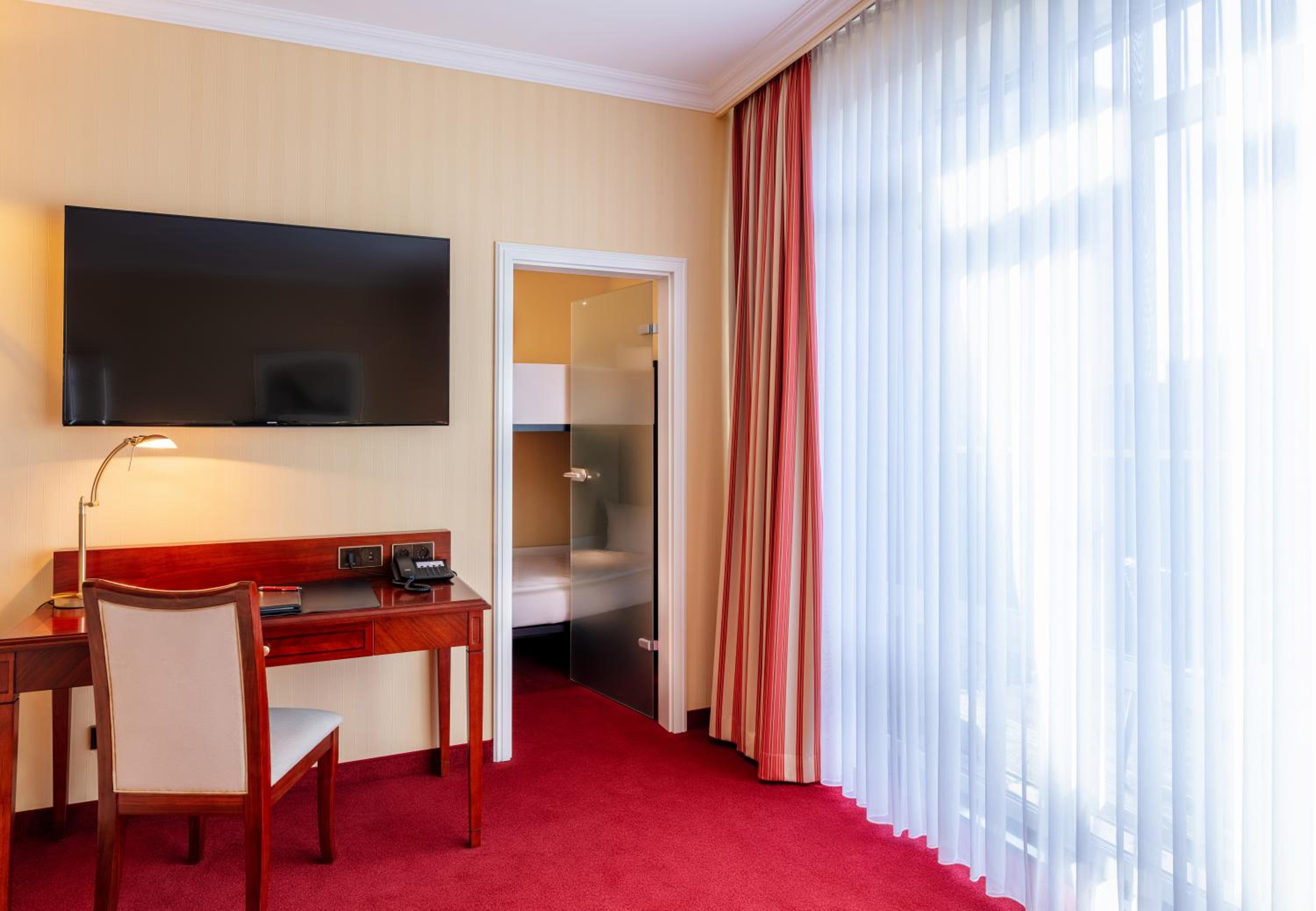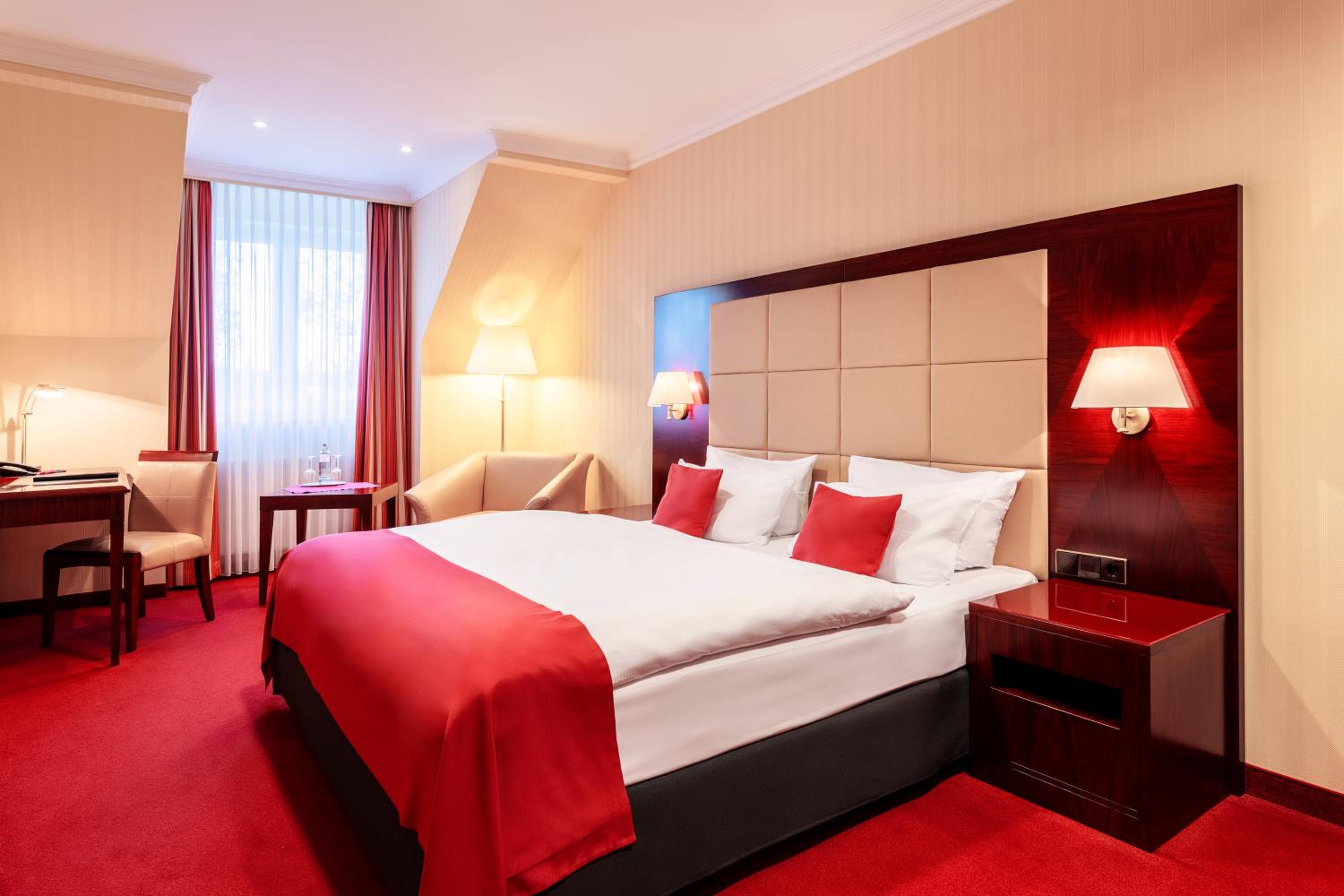Das Farbkonzept aus Crème und Rot in den Zimmern ist leicht gewöhnungsbedürftig.