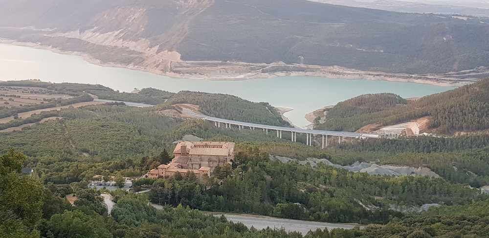 Un sitio para desconectar del mundo. La sierra de Leyre es espectacular de ver. Los paseos por los alrededores más vele ir acompañado, no aconsejo ir solo. El restaurante para mí la cena la vi un poco cara, para desayunar es todavía mejor. La habitación esta bien limpia y cuidada. El bar lo cierran pronto.