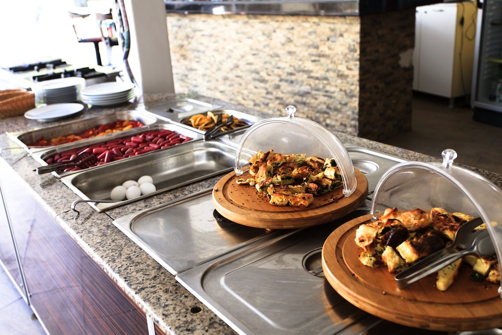 Kahvaltı çok zayıftı. Akşam yemeğinde 4 çeşit var, kaldığımız 4 gün boyunca pirinç pilavı yedik. Zeytinyağlı kısmı durumu kurtarıyor.Tatlı kemalpaşa , meyve karpuz kavundan oluşuyor.