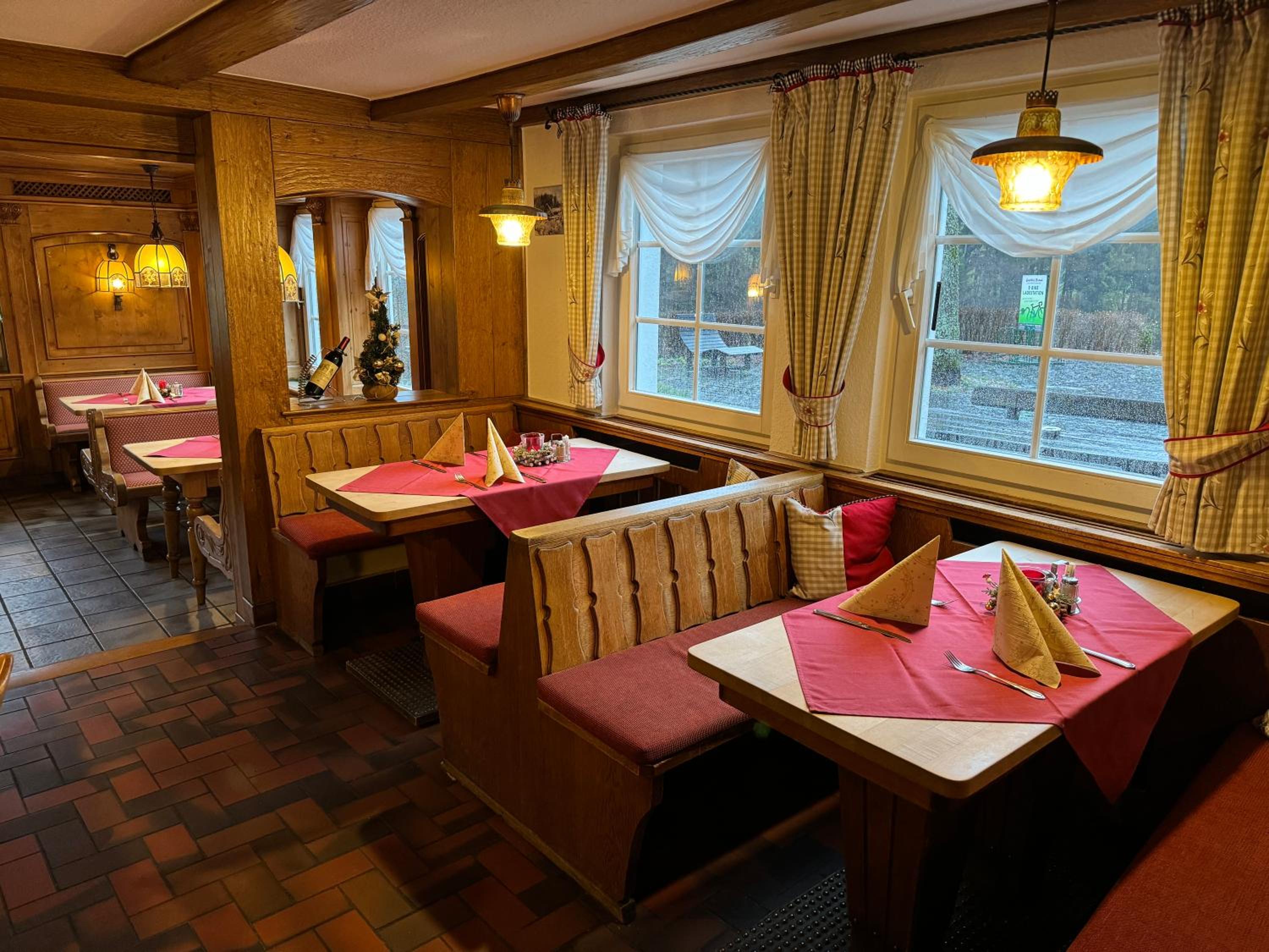 Indulge in our tasty breakfast buffet to kickstart your day and savor hearty regional dishes in our welcoming restaurant. During summer, unwind on our garden terrace with homemade cakes and freshly brewed coffee, a perfect spot for relaxation.