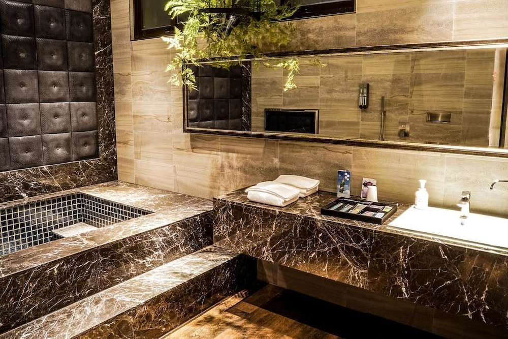 硬體設備:佳,有大電視、大浴池等,可領取一次性牙刷牙膏,提供非一次性拖鞋。廁所浴室水溫控制良好、水量充足。房間空間大,提供小冰箱、熱水瓶、吹風機等。