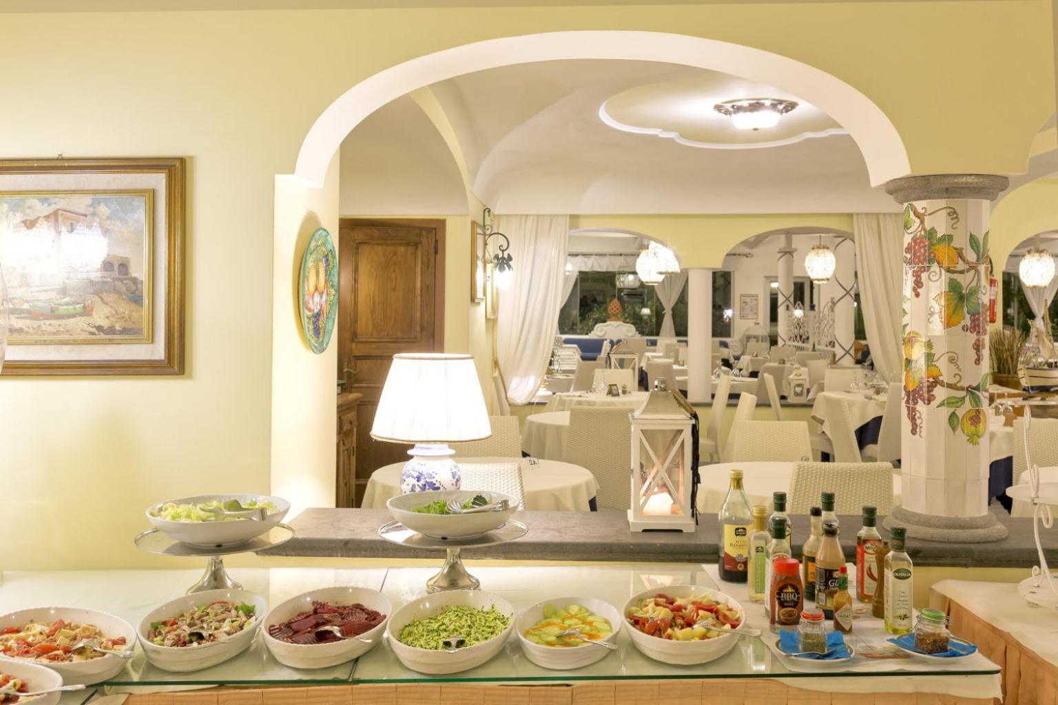 Indulge in a culinary journey at the on-site restaurant, offering a mix of regional and Italian dishes. Start your day with a delicious sweet breakfast served buffet-style, ensuring a delightful beginning to your mornings.