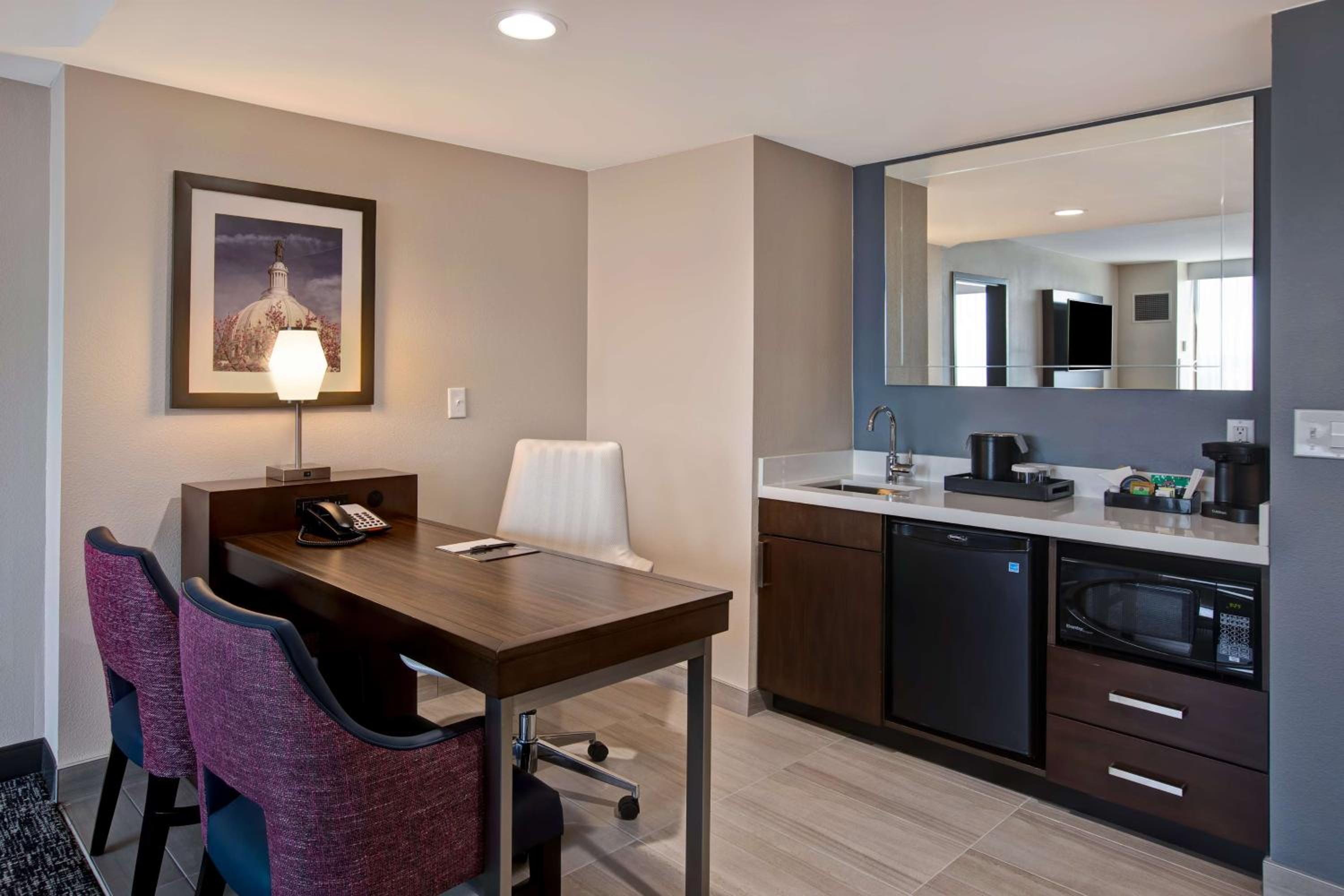 The desk staff was particularly accommodating. They have a 2-drink manager reception in the evenings, and in the mornings they have a do-it-yourself breakfast with many choices, and one person making fried eggs and/or omlettes for those that want them. They really are a cut above any other free breakfast offer I've experienced. The dining room is kept clean, and free of dishes making the experience even better.