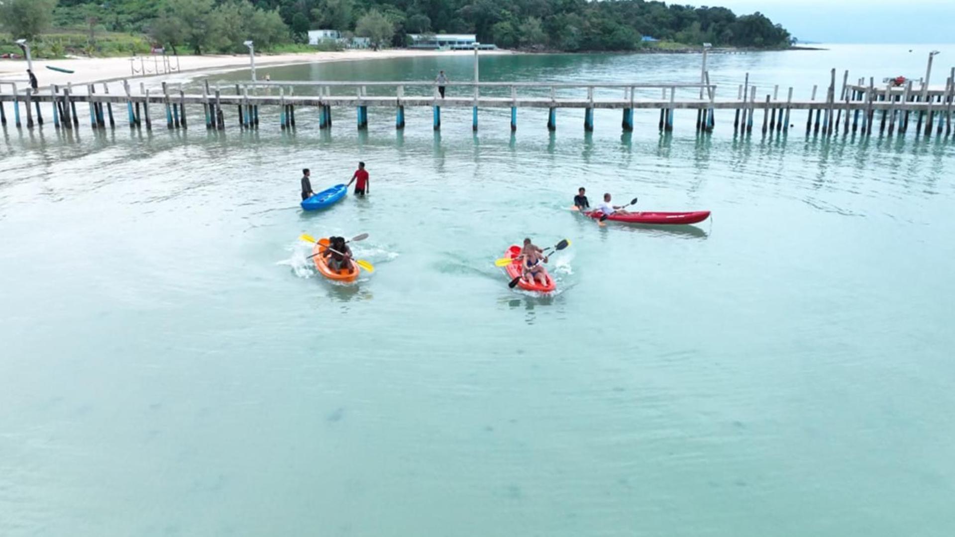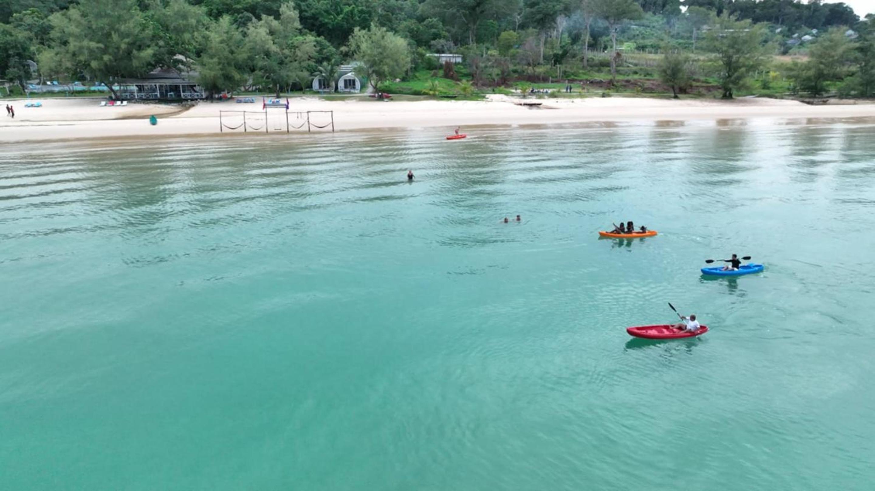 Embark on hiking adventures and explore the beauty of Koh Rong Sanloem. After a day of exploration, unwind by the pool or sip cocktails at the bar. Book your stay at Tube Resort for a memorable beach getaway.
