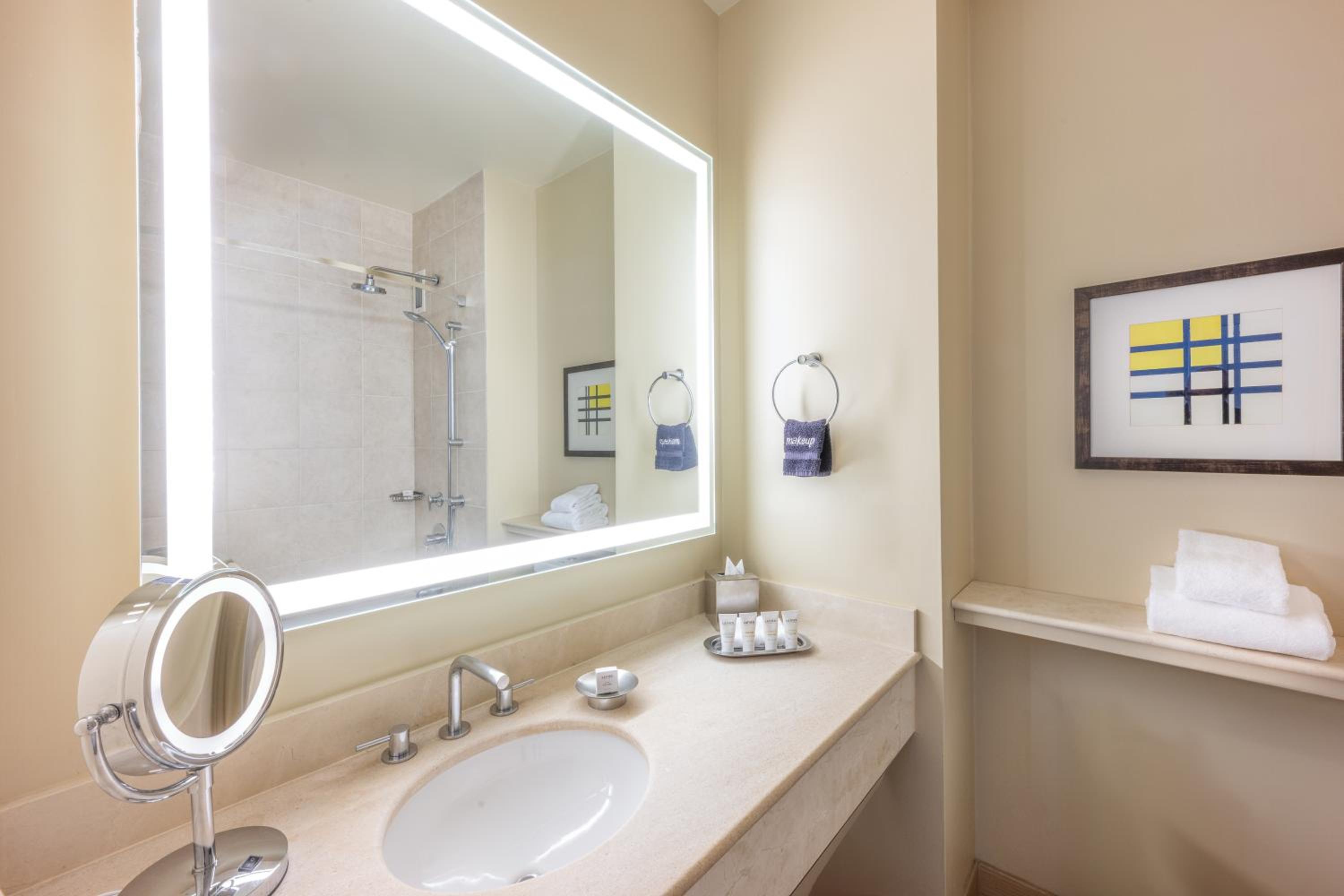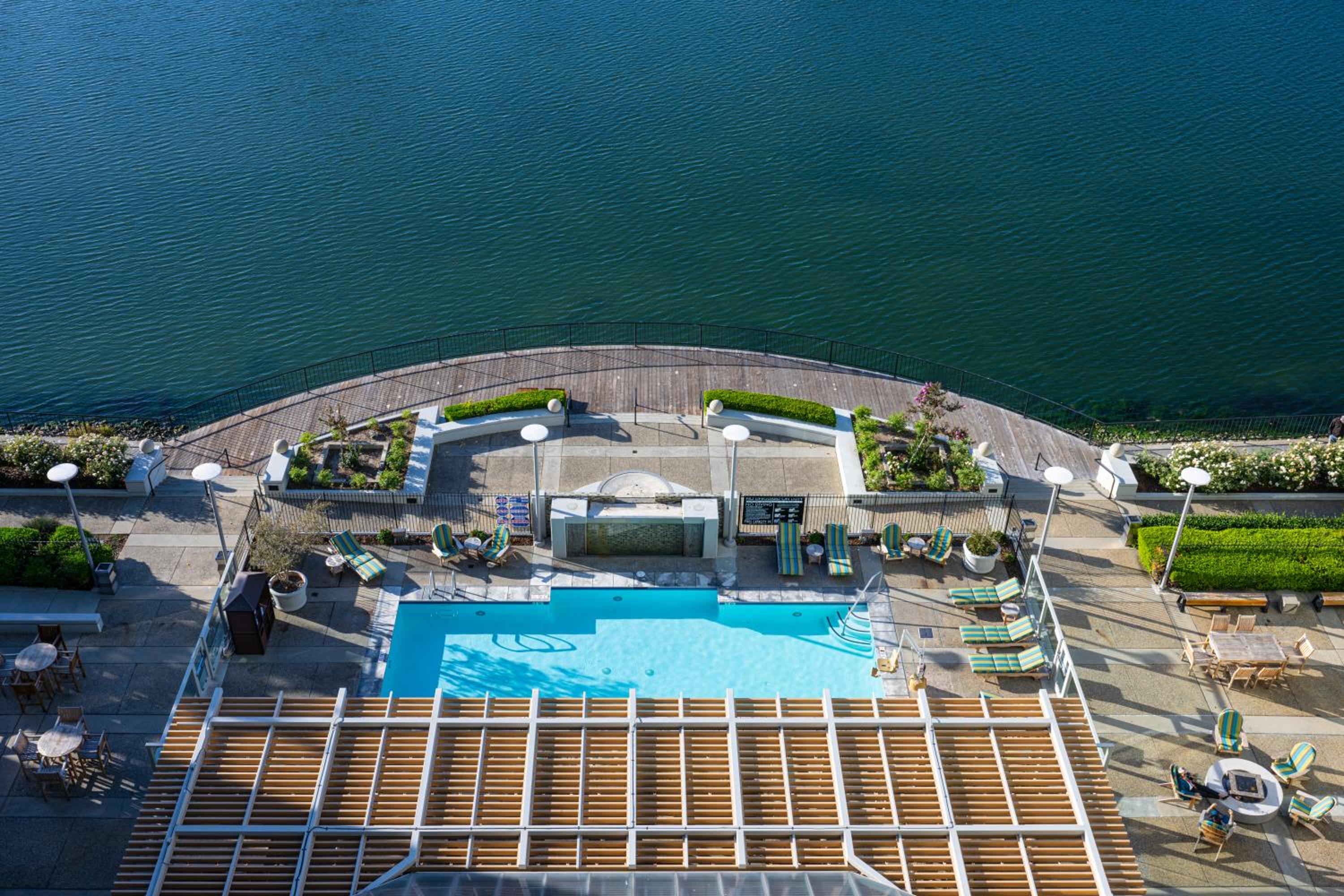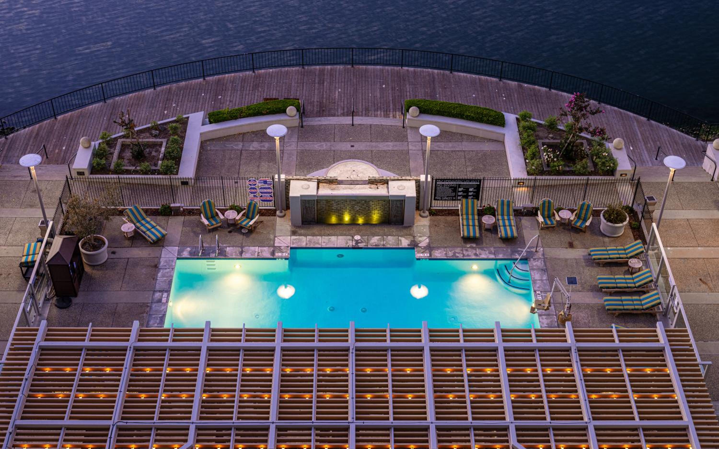 Experience luxury at Grand Bay Hotel San Francisco with rooms overlooking a picturesque lagoon. Indulge in comfort with a work desk, coffee machine, and room service. Delight your palate at Waterside Grill and Lounge, offering local cuisine with lagoon views, or sip unique cocktails at the Bar overlooking the pool.